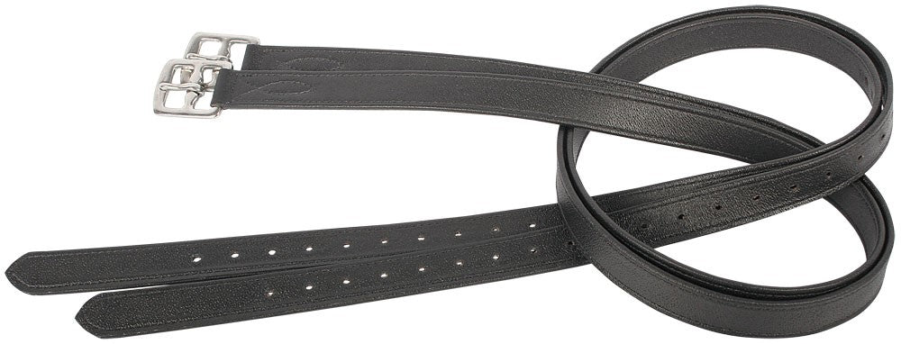Plastic stirrup straps with silver stainless steel buckles. The stirrup straps are reinforced with nylon over the entire length. Easy to clean.