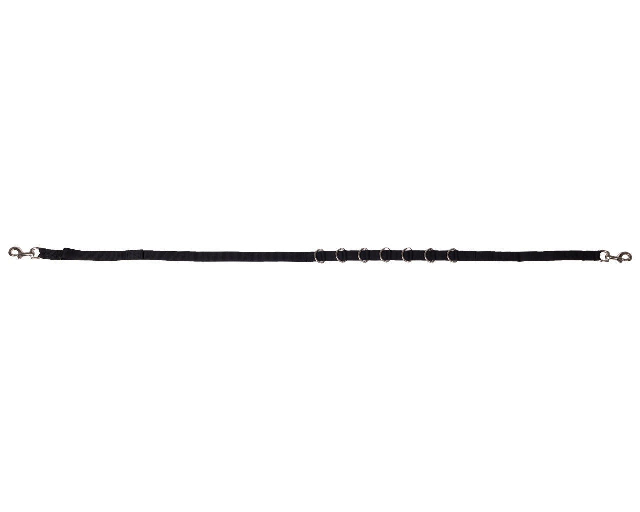 During lunging, the side rein is used to teach the horse to yield. And can be used to ask for a lower, horizontal or higher position. The side rein is equipped with 6 D-rings to quickly adjust the rein in length and is therefore very easy to use. The elastic insert offers comfort for the horse.