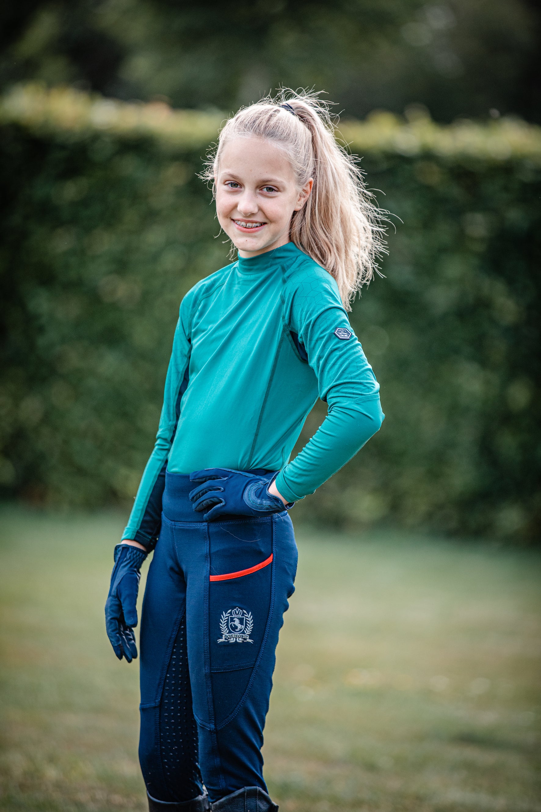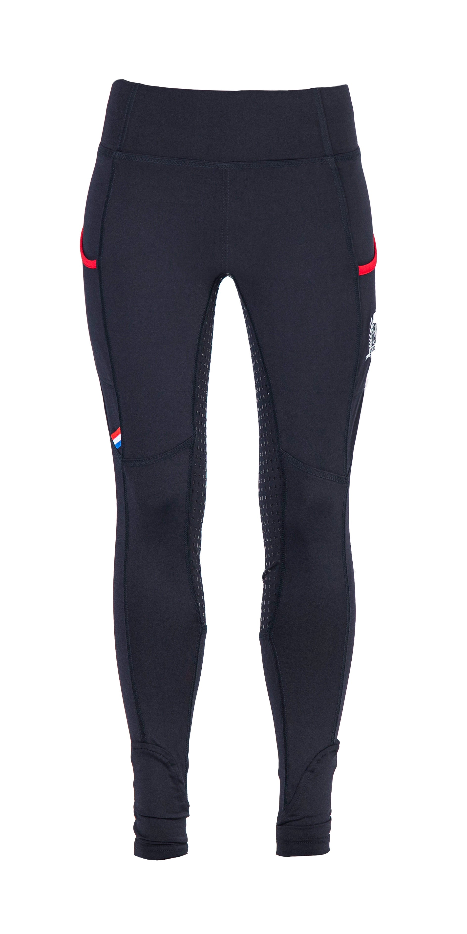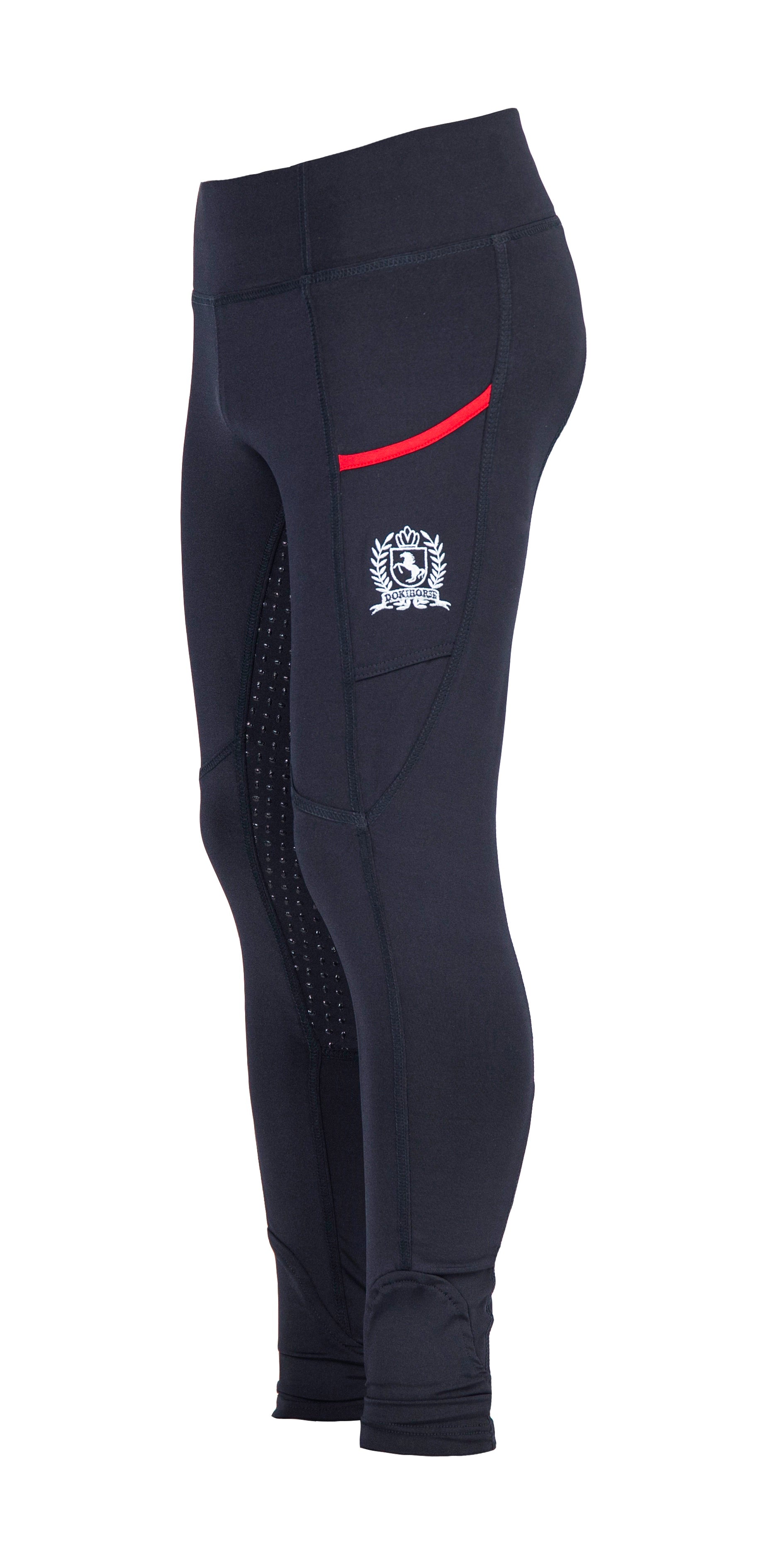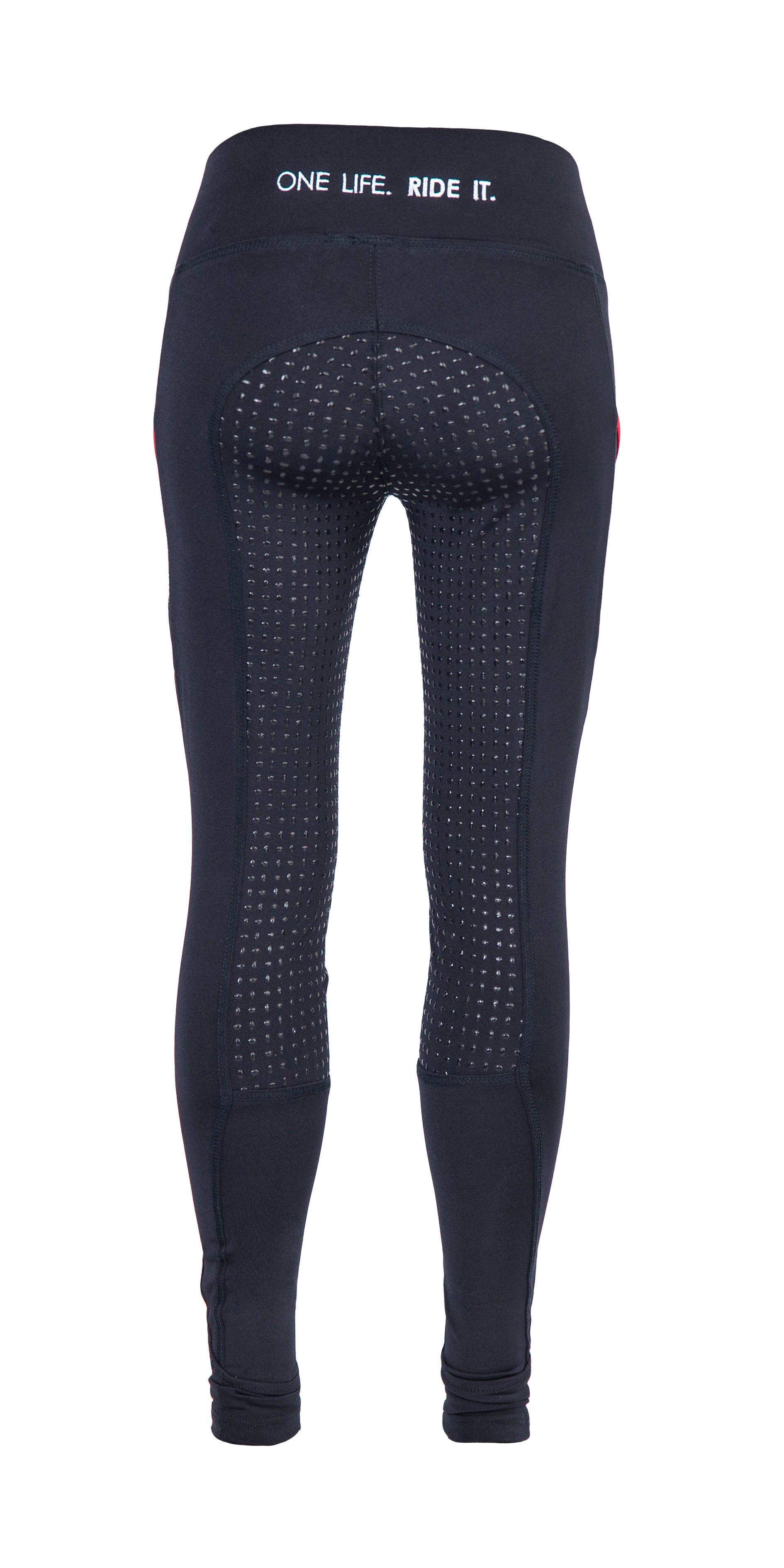 Very comfortable and stretchy fabric, pull-up model (without front closure), contrast (red) piping on the side, round-stitched seat with silicone print extra grip in the saddle, lycra flex legs. High band for optimal wearing comfort.