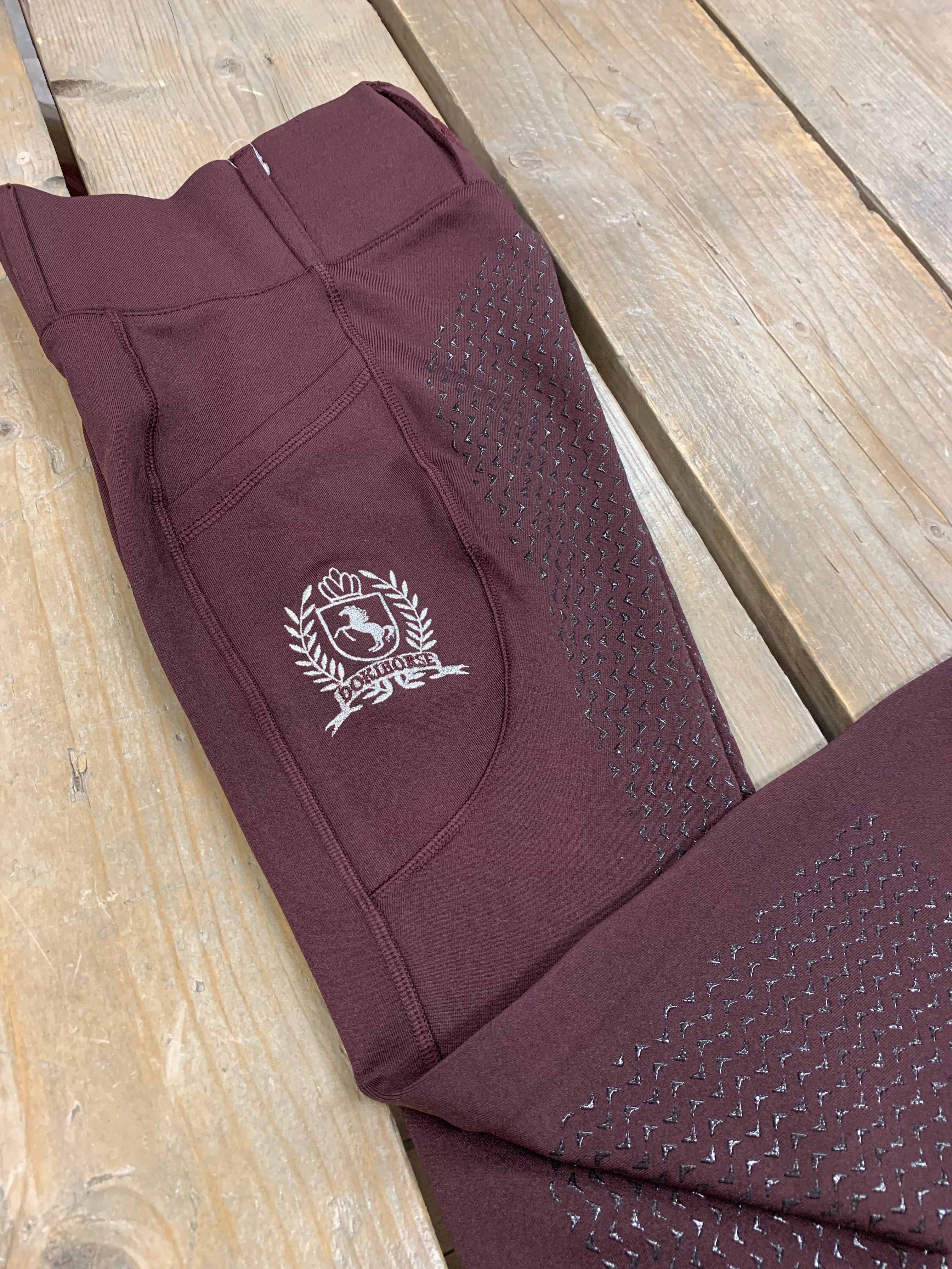 Very comfortable and stretchy fabric, pull-up model (without front closure), round-stitched seat with silicone print for extra grip in the saddle. High waistband for optimum wearing comfort. And equipped with belt loops.