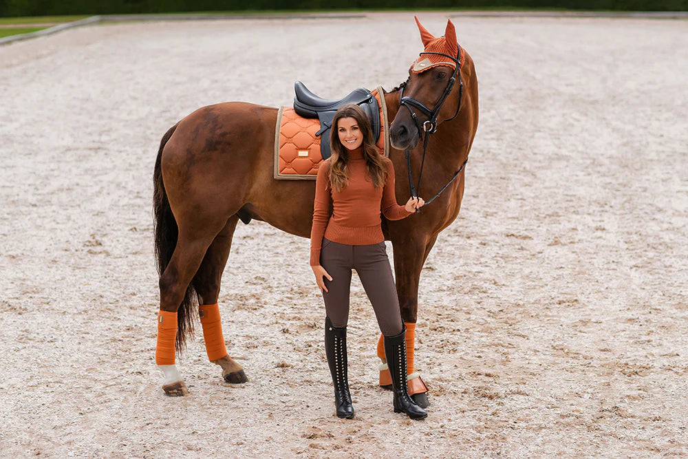 Elegant saddle pad in grey/blue colour with black and silver details. Decorated with the Equestrian Stockholm emblem in black. The material is treated with High IQ Cool Comfort, which ensures quick-drying and moisture-regulating properties, so that your horse stays dry and comfortable for longer.