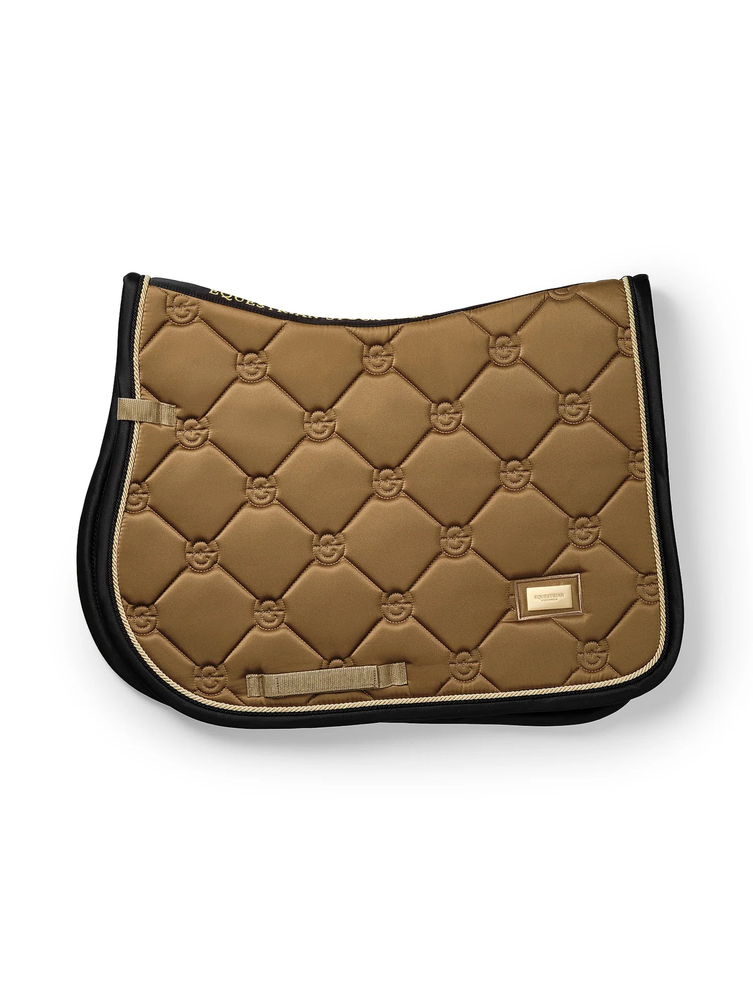 The Golden Brown saddle pad is a real favorite and a must-have! Our luxurious saddle pad in shiny dark brown is perfect for training and also competitions. The inner material has a 'super quick dry' function and keeps your horses dry during your training. The saddle pad is shiny and dirt-repellent with beautiful details in gold and quilted with the Equestrian Stockholm logo.