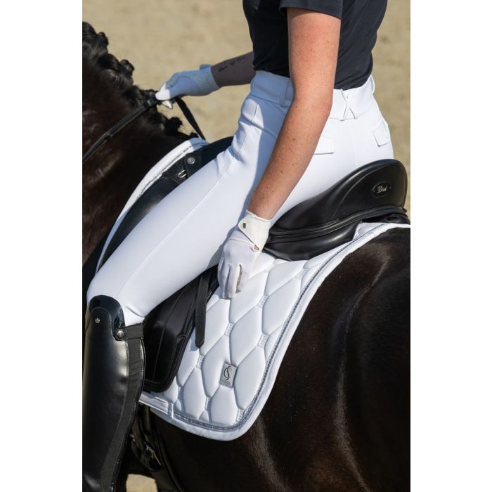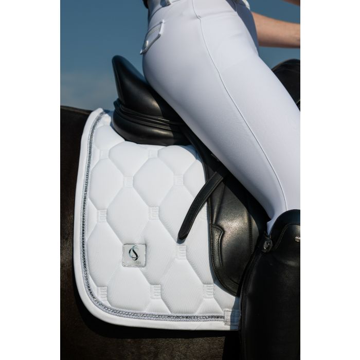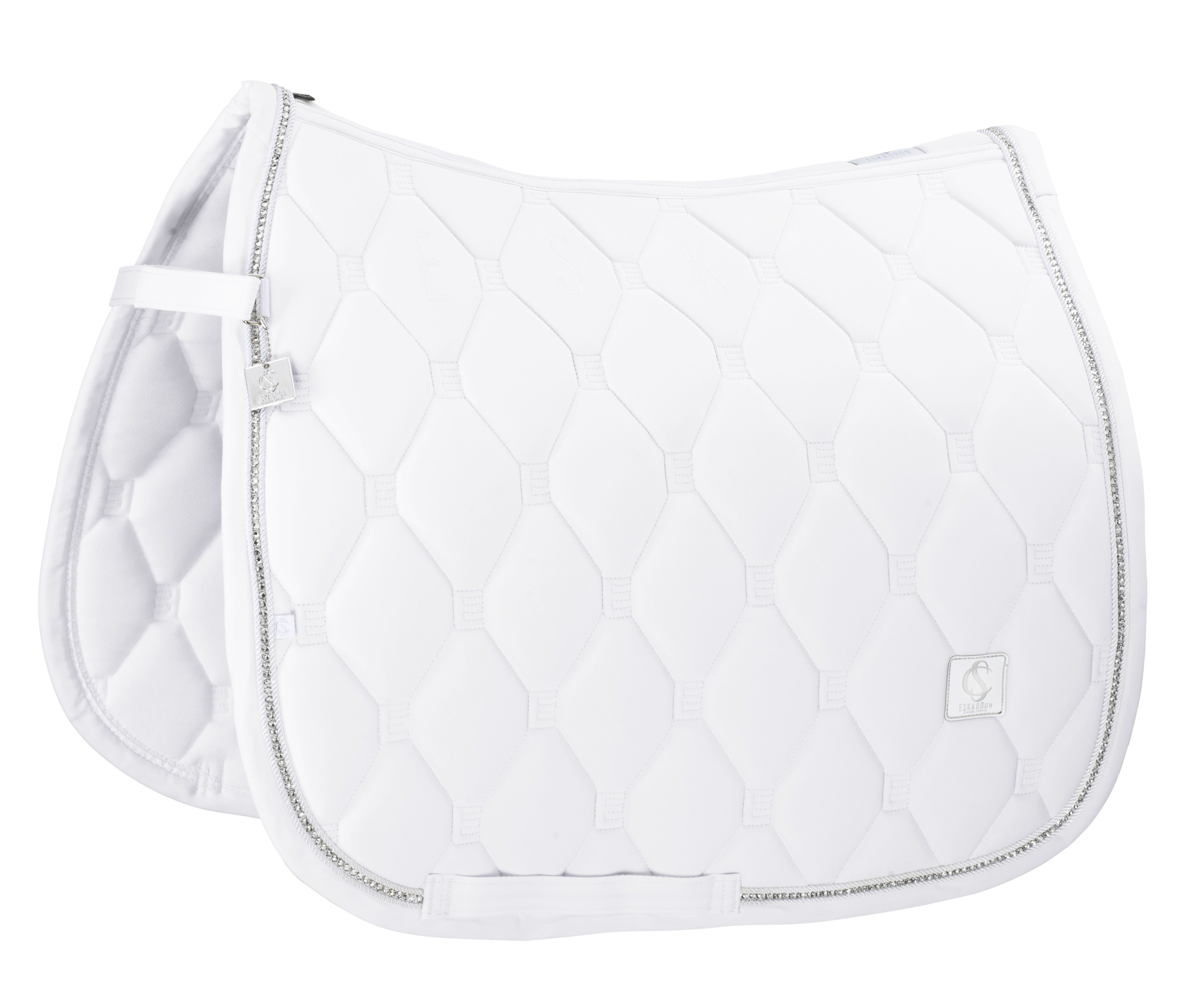 Stijlvolle dekje met robuuste softshell buitenkant en ademende Cool Dry binnenzijde voor optimaal comfort. De elegante E-quilting en kristalkoord combinatie op de softshell bies zorgen voor een luxe uitstraling. Antislip siliconen oppervlakken in het zadelgebied bieden extra grip, terwijl het mesh rugkanaal zorgt voor optimale luchtcirculatie. Dankzij het Innostrap-systeem en de singelriem met drievoudige fixatie blijft de onderlegger perfect op zijn plaats.