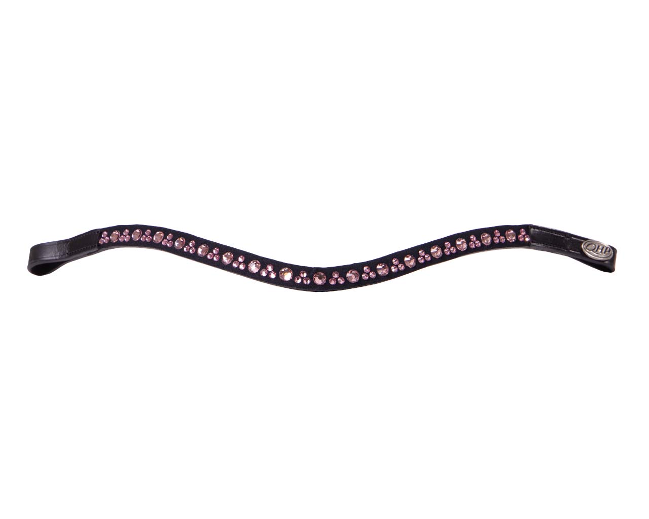 Black leather browband in chic wave shape with large and small colored rhinestones.