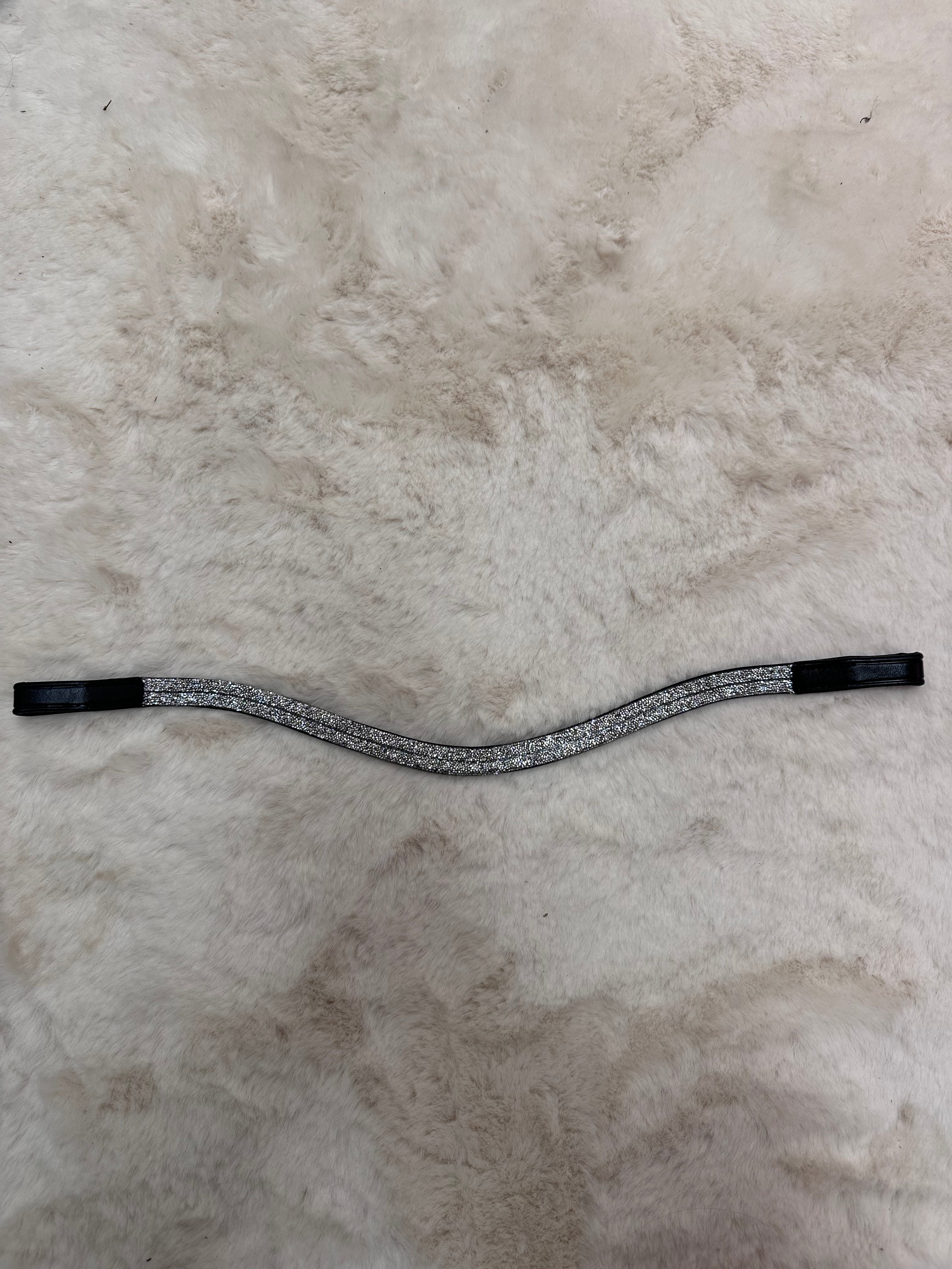 Deze stijlvolle frontriem is versierd met schitterende bling steentjes in een elegante golfvorm. Het voegt een vleugje glamour en verfijning toe aan het hoofdstel, terwijl het een subtiele, maar opvallende uitstraling heeft. Perfect voor paardenliefhebbers die hun rijuitrusting willen verfraaien met een luxueuze, moderne touch.