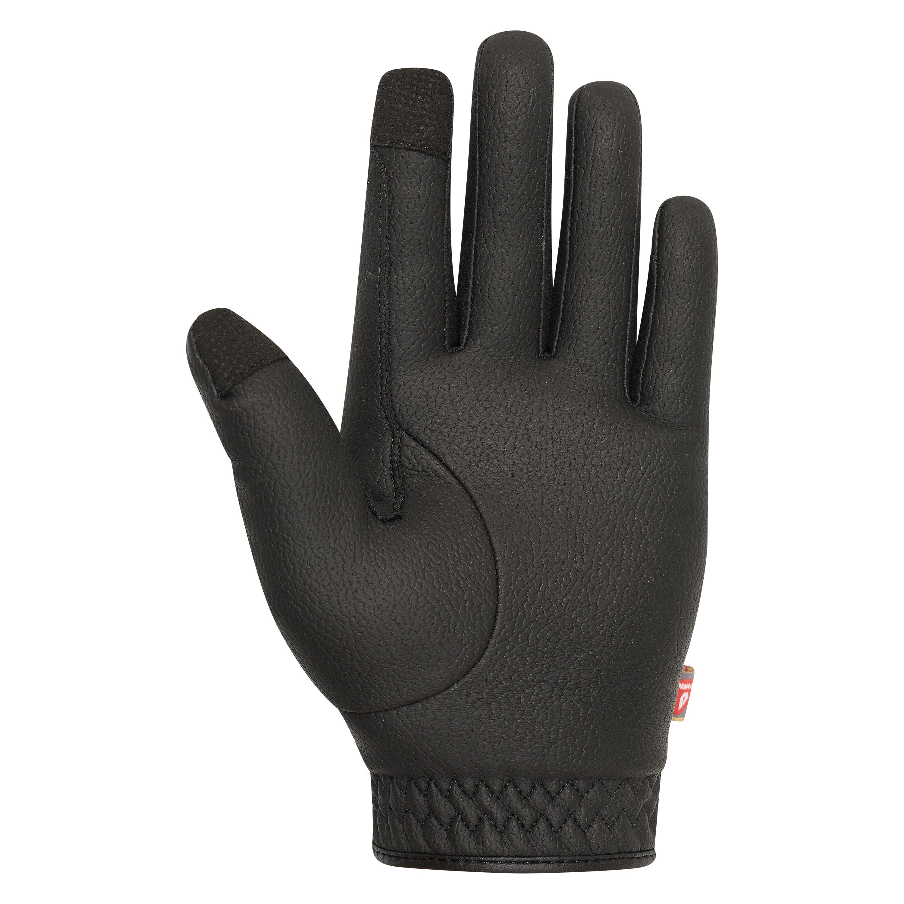Fashionable glove with soft and warm faux fur at the wrist. With metal HV Polo coin at the strap.