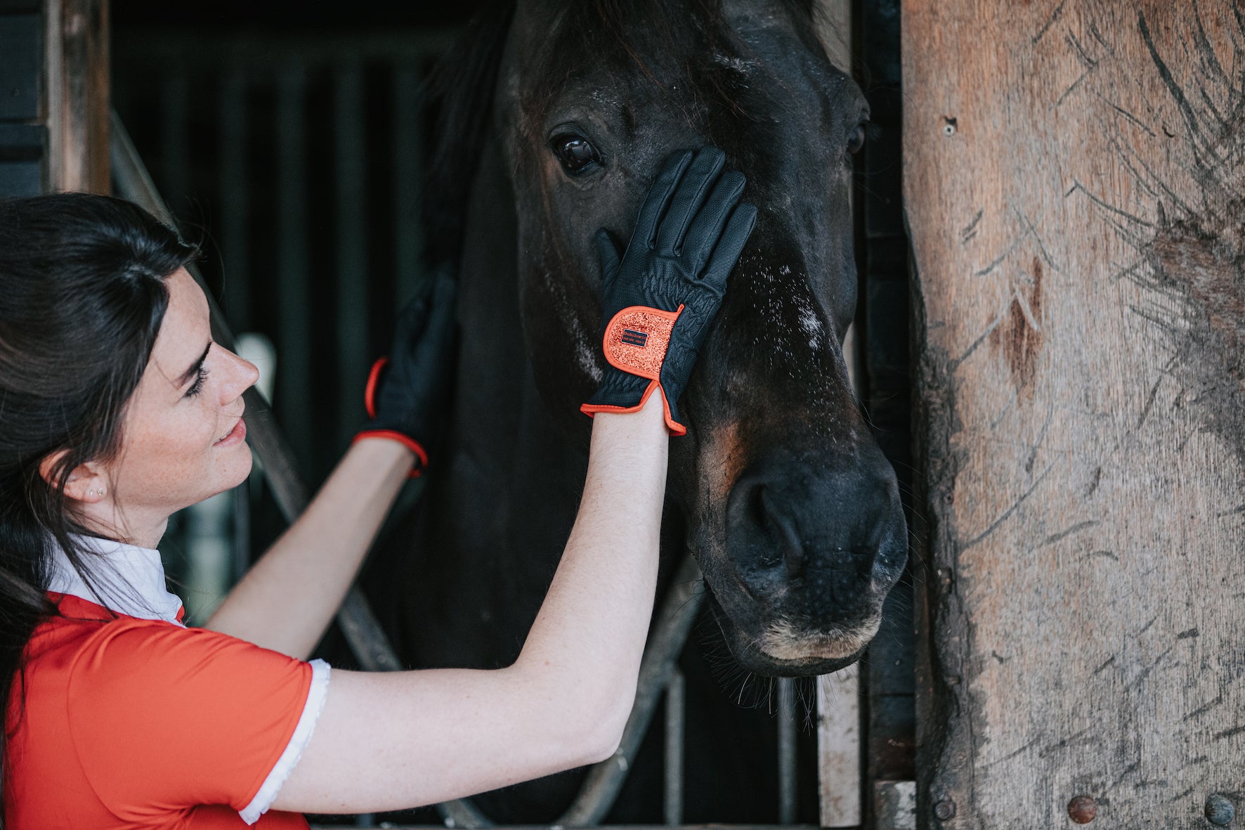 The glove is made of supple synthetic leather and has handy thickening on the index finger and thumb to be able to operate your phone with the gloves. Equipped with Dokihorse logo.