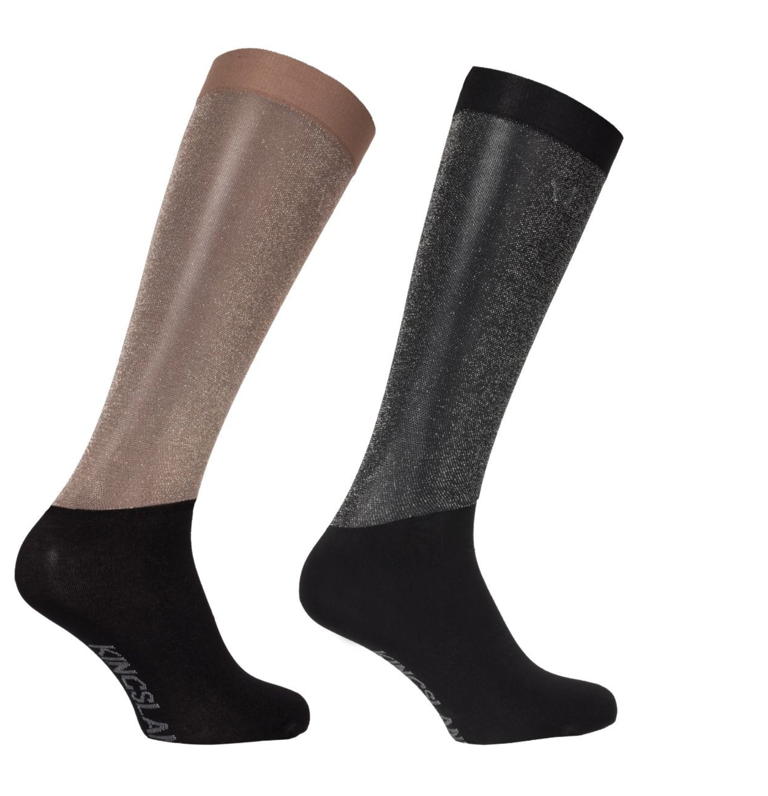 De Kingsland KLLea Glitter Show Socks 2-pack combineert comfort met een nette, glitterende look. Het voetgedeelte is gemaakt van een ademende katoenmix die zacht aanvoelt en tegelijk steun biedt. De schacht is van een dunne nylonkwaliteit met all-over glitter voor een subtiele, verzorgde uitstraling.