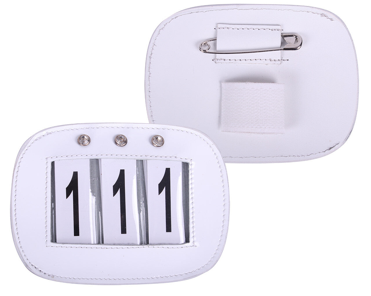 Never again suffer from unflattering fluttering competition numbers with this chic number holder. Comes with numbers and easy to attach to the bridle or saddle pad.