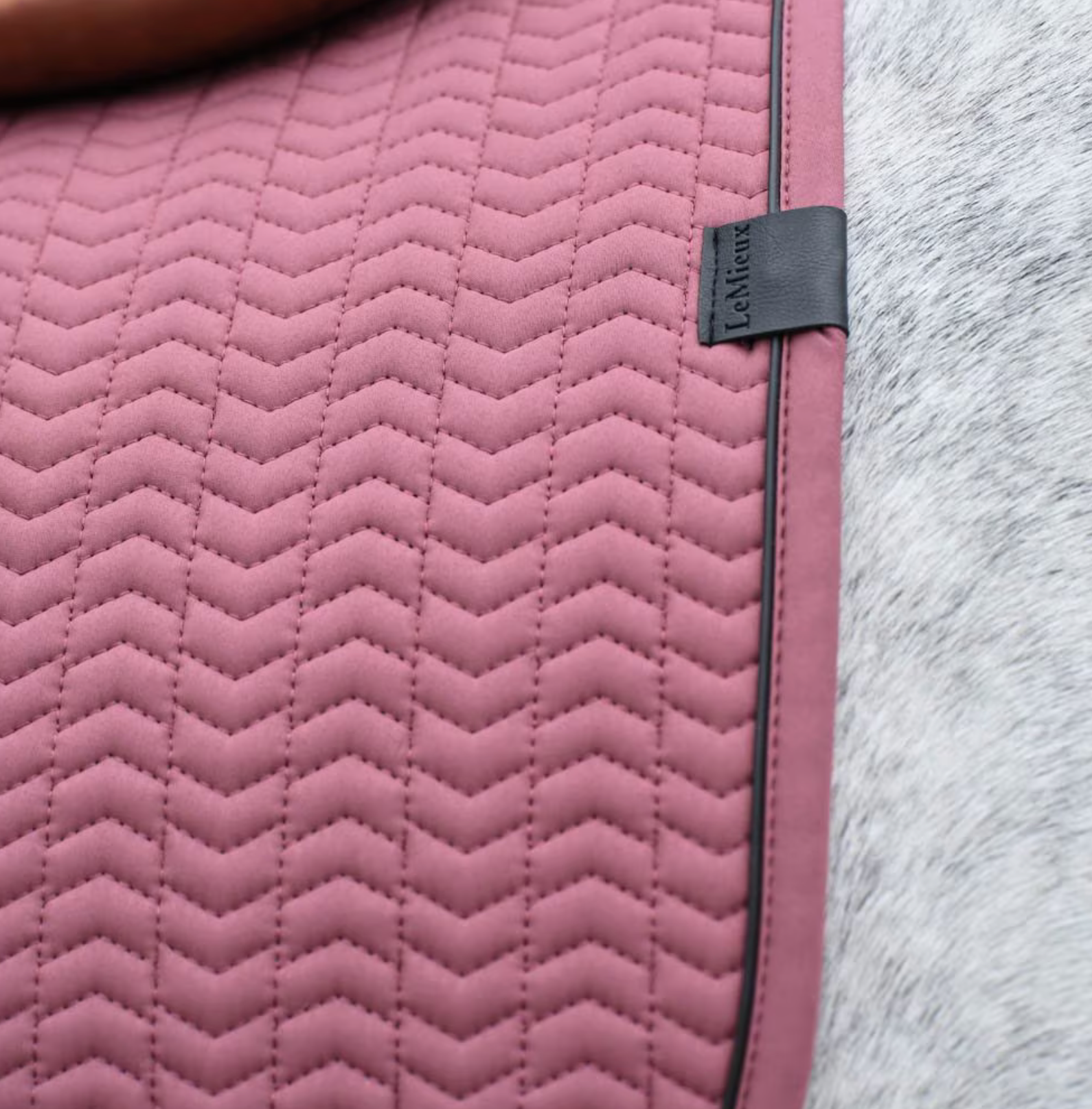 Het LeMieux zadeldek Essence Rosewood SS25 is ontworpen voor ruiters die op zoek zijn naar technische prestaties en luxe. De gestroomlijnde, gewatteerde softshell bovenkant sluit zich perfect aan op de contouren van je paard, zonder te kreuken. De ademende voering is gemaakt van koelvezels die actief warmte van de huid afvoeren en zweet efficiënt absorberen, wat zorgt voor extra comfort, vooral tijdens intensieve trainingen. Het dekje heeft een 3D carbon mesh ruggengraat voor maximale luchtstroom en een hoge schoftvorm die de druk vermindert en de pasvorm verbetert.