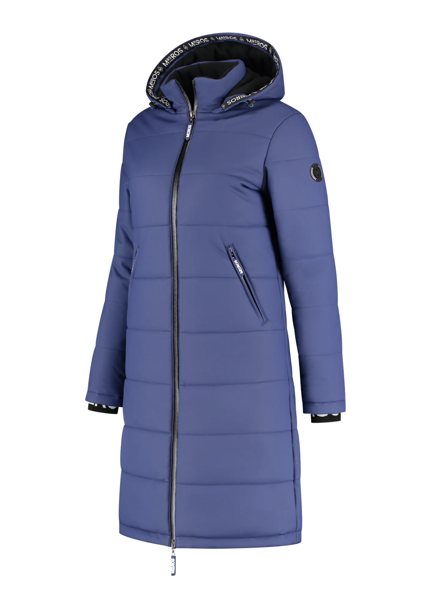 Onze lange Billy jas heeft een tweerichtingsrits aan de voorkant. De jas heeft ook een taps toelopende taille en een bevestigde capuchon.