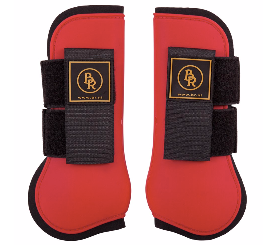 Polyurethane tendon boots with neoprene lining and Velcro closures with overlap.