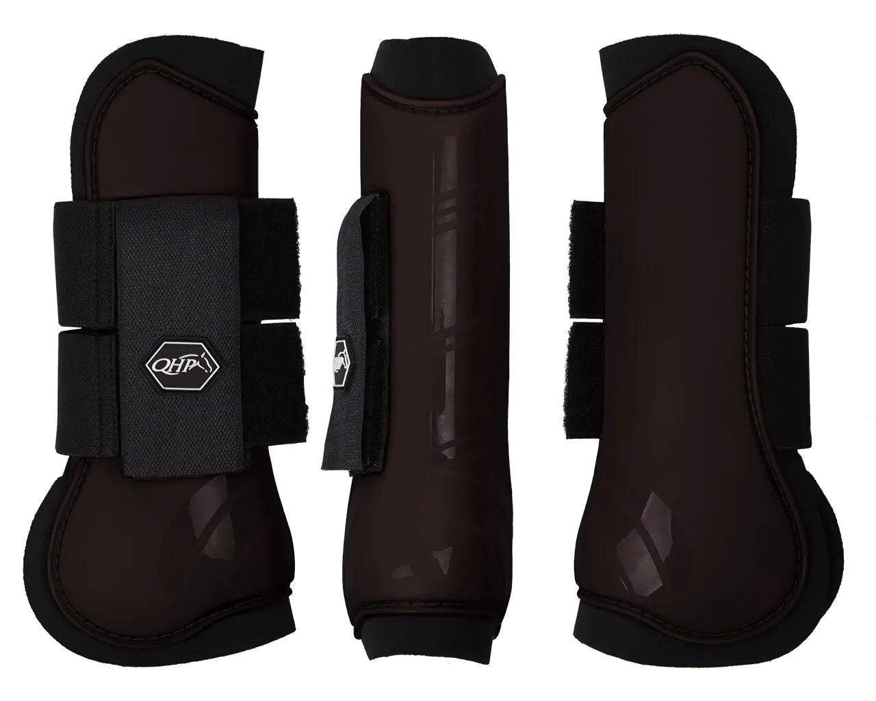 Set of two tendon boots with hard plastic shell and neoprene lining. Can be closed with velcro. To be used to protect the horse's leg from being tapped. Available in many colours.