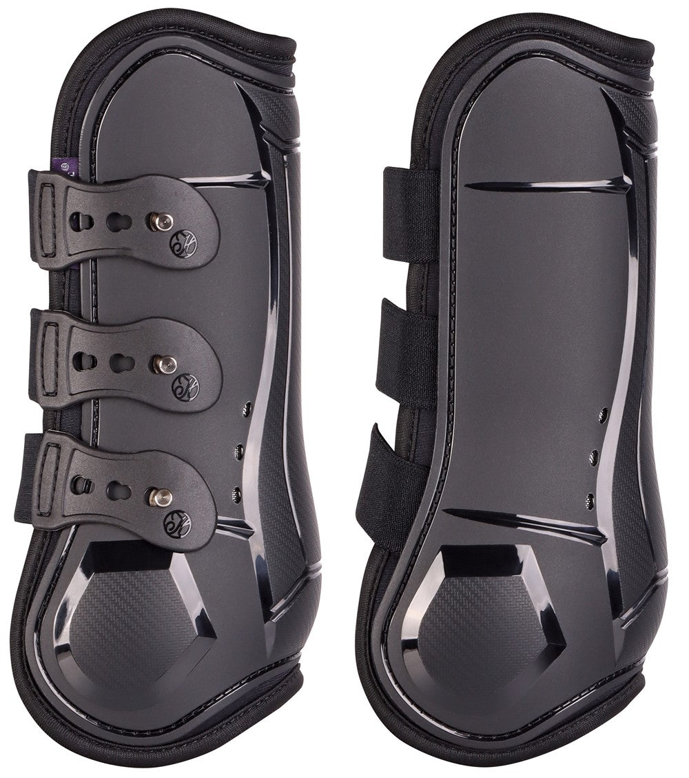 Prachtige peesbeschermers met een perfecte pasvorm. Met sterke, elastische sluitingen. Door de speciale knopsluiting is er geen klittenband nodig. De "metal mesh" ventilatiegaten in de schaal zorgen voor ventilatie en beluchting. Door de optimale pasvorm heeft het paard veel bewegingsvrijheid. De TPU buitenschaal beschermt tegen aantikken en heeft een extra verdikking op de pees en op de kogel voor extra bescherming.