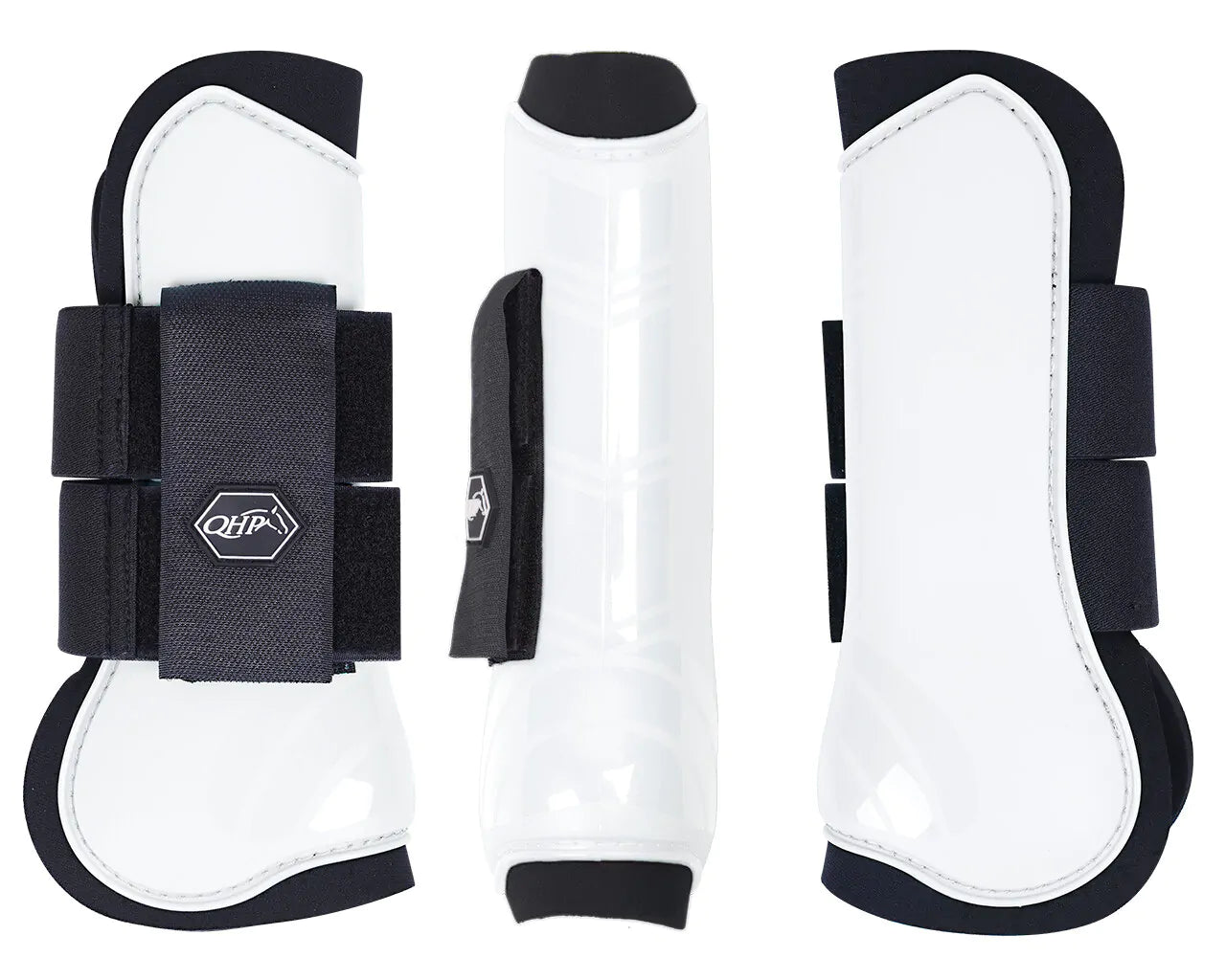 Set of two tendon boots with hard plastic shell and neoprene lining. Can be closed with velcro. To be used to protect the horse's leg from being tapped. Available in many colours.