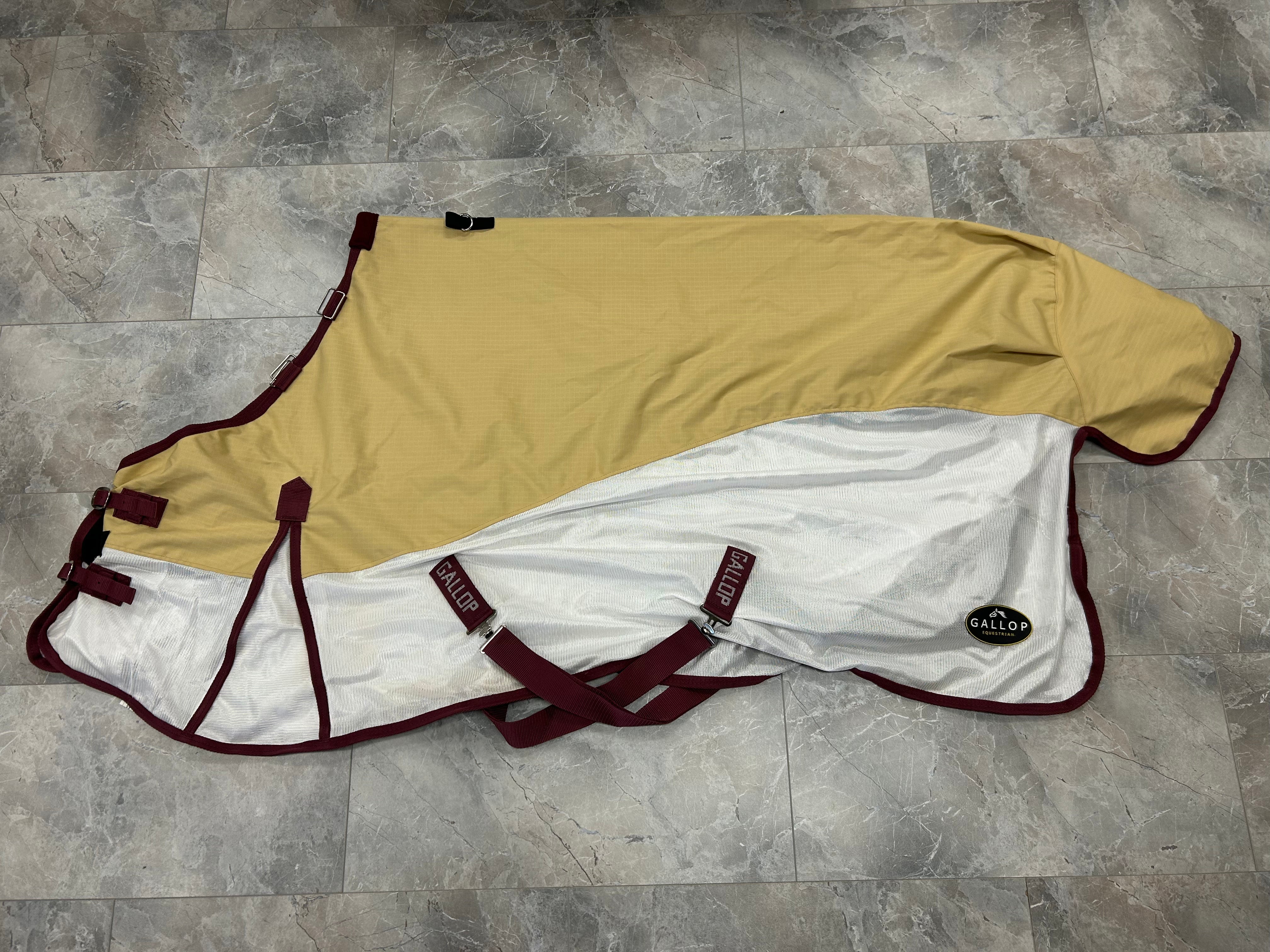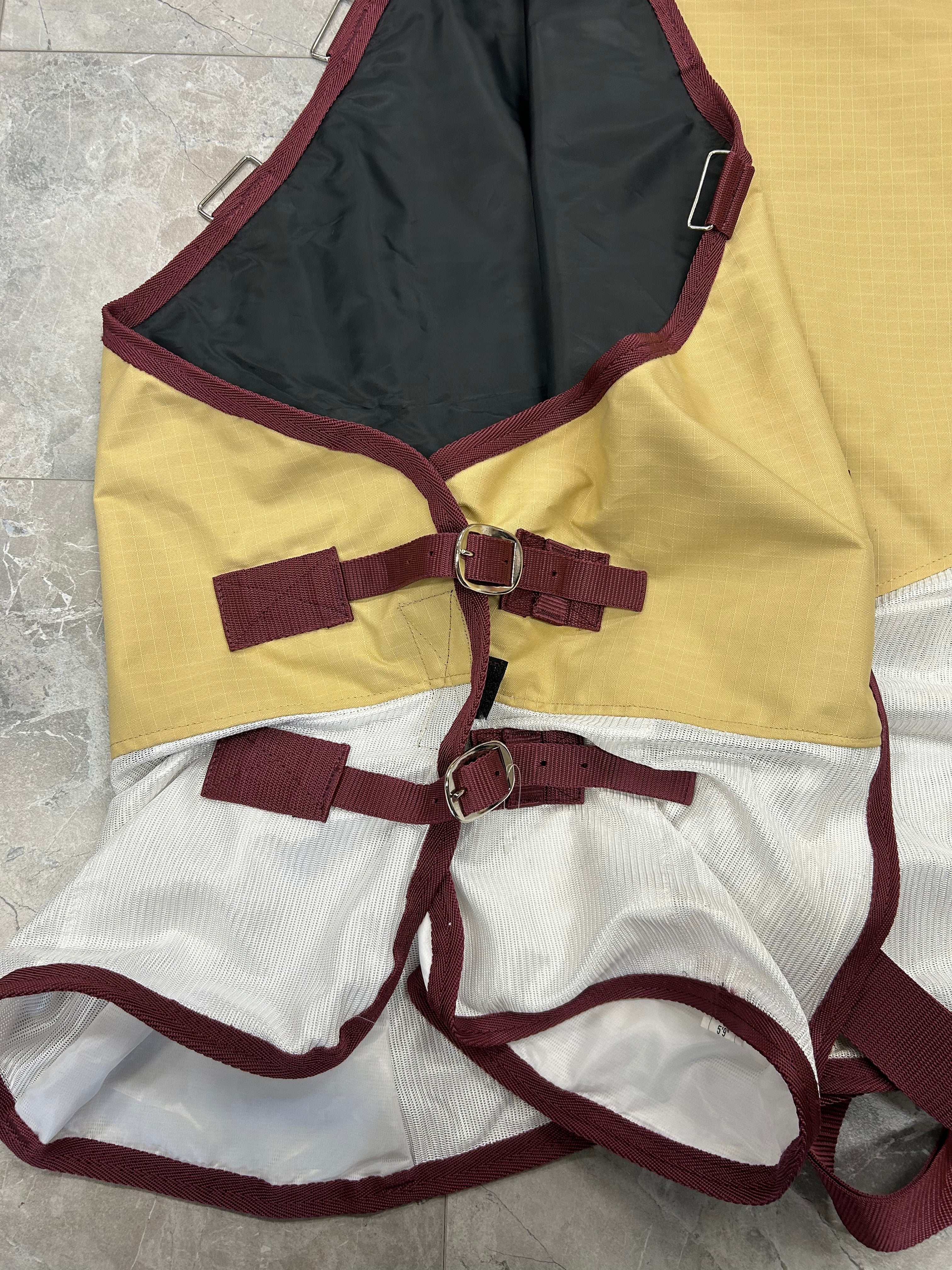 De bovenkant van de deken is uitgevoerd in waterdicht en ademend materiaal, vergelijkbaar met dat van een regendeken, zodat je paard droog blijft bij lichte regenbuien. De zijkanten en onderkant bestaan uit fijnmazige, ademende stof die vliegen, dazen en andere insecten effectief op afstand houdt. De deken is voorzien van stevige voorsluiting, buiksingels, een staartriem en bilkoorden voor een stabiele en comfortabele pasvorm. Ideaal voor wisselvallige zomerdagen waarop zon en regen elkaar afwisselen.