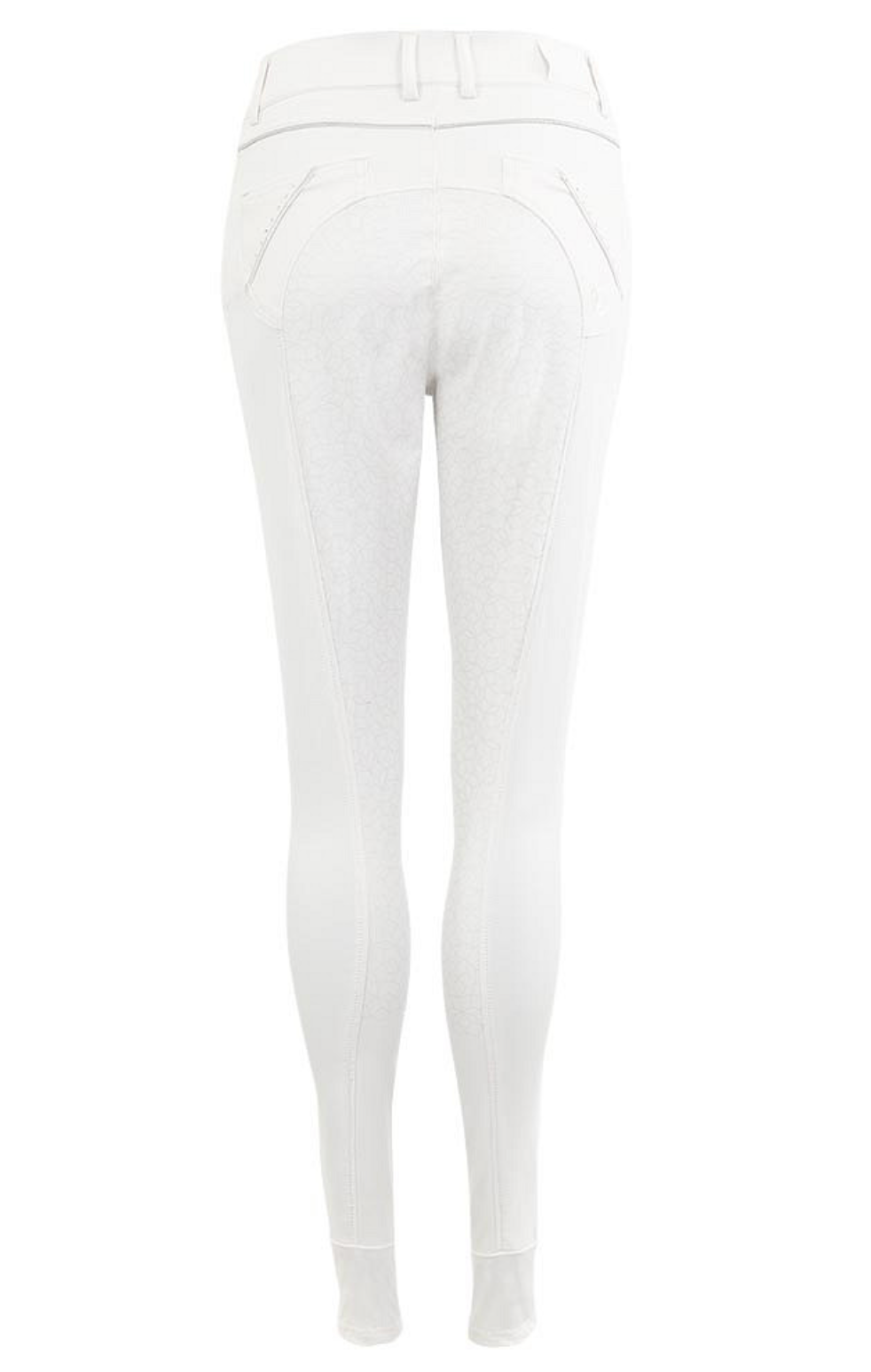 The Brighton riding breeches are finished with shiny silver elements, such as contrast piping and imitation diamonds on the pockets. The stretch fabric, elastic waistband and elastic leg closure ensure an optimal fit. The silicone seat with graphic pattern ensures a stable seat.