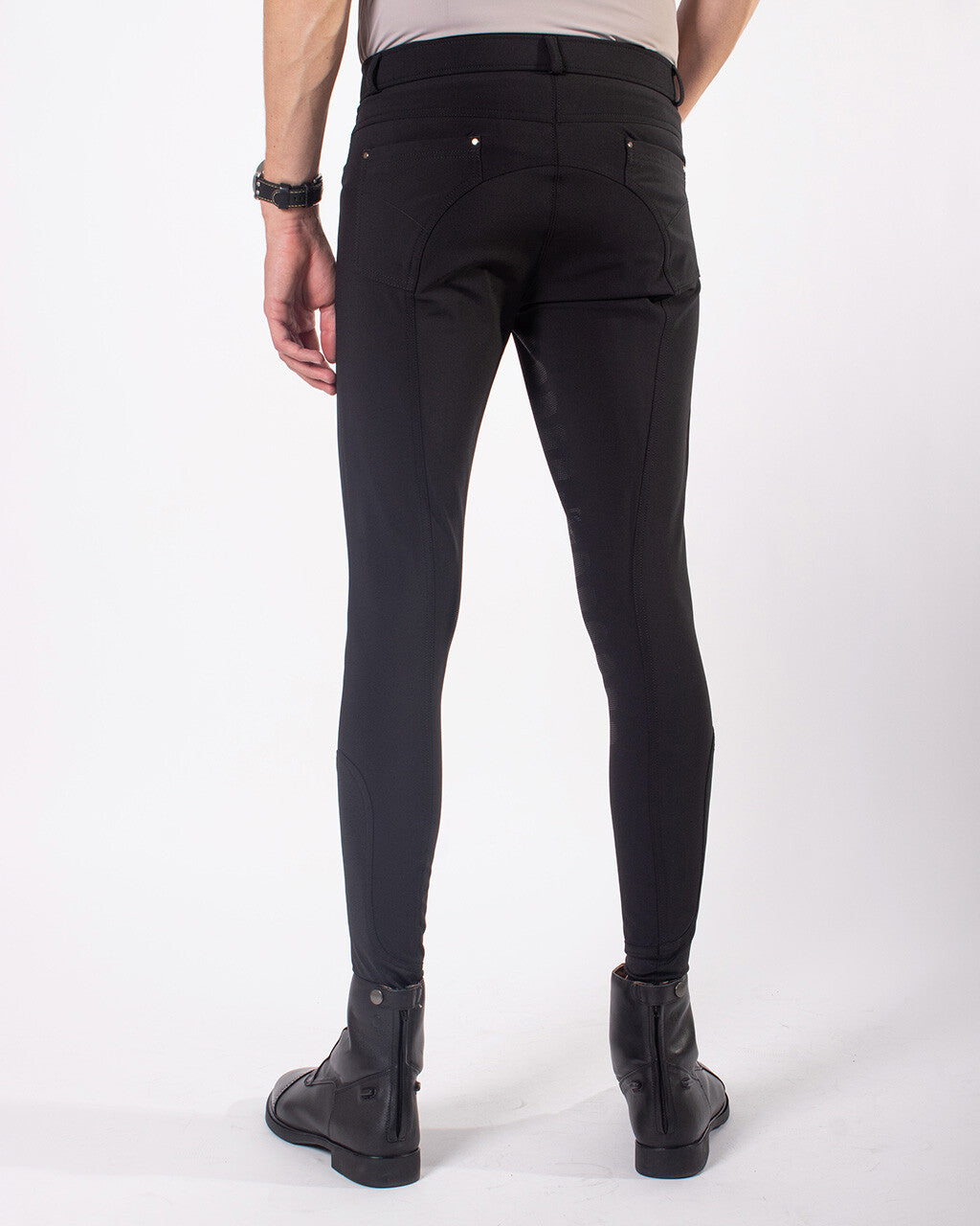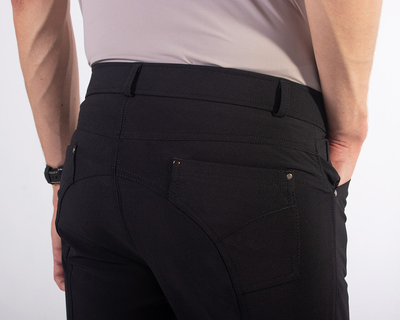 Rijbroek met een sportief anti-slip patroon op de binnenkant van de benen. De rijbroek is voorzien van twee steekzakken aan de voorkant, waarvan één is voorzien van een coin pocket. Ook de achterkant heeft de broek twee steekzakken met subtiele stiksels.