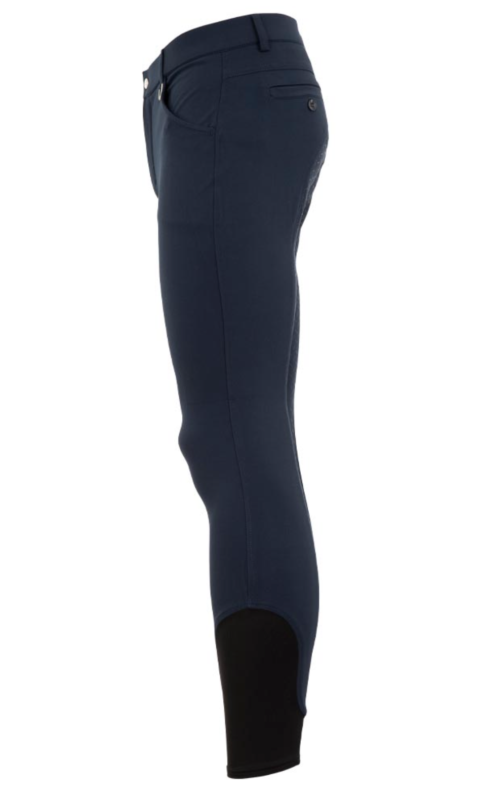 These men's riding breeches with a classic look feature a silicone seat for extra grip and a more stable seat. The riding breeches feature two slit pockets on the front and two welt pockets on the back. The front pockets can be closed using a press stud on the inside and the back pockets also feature a button.