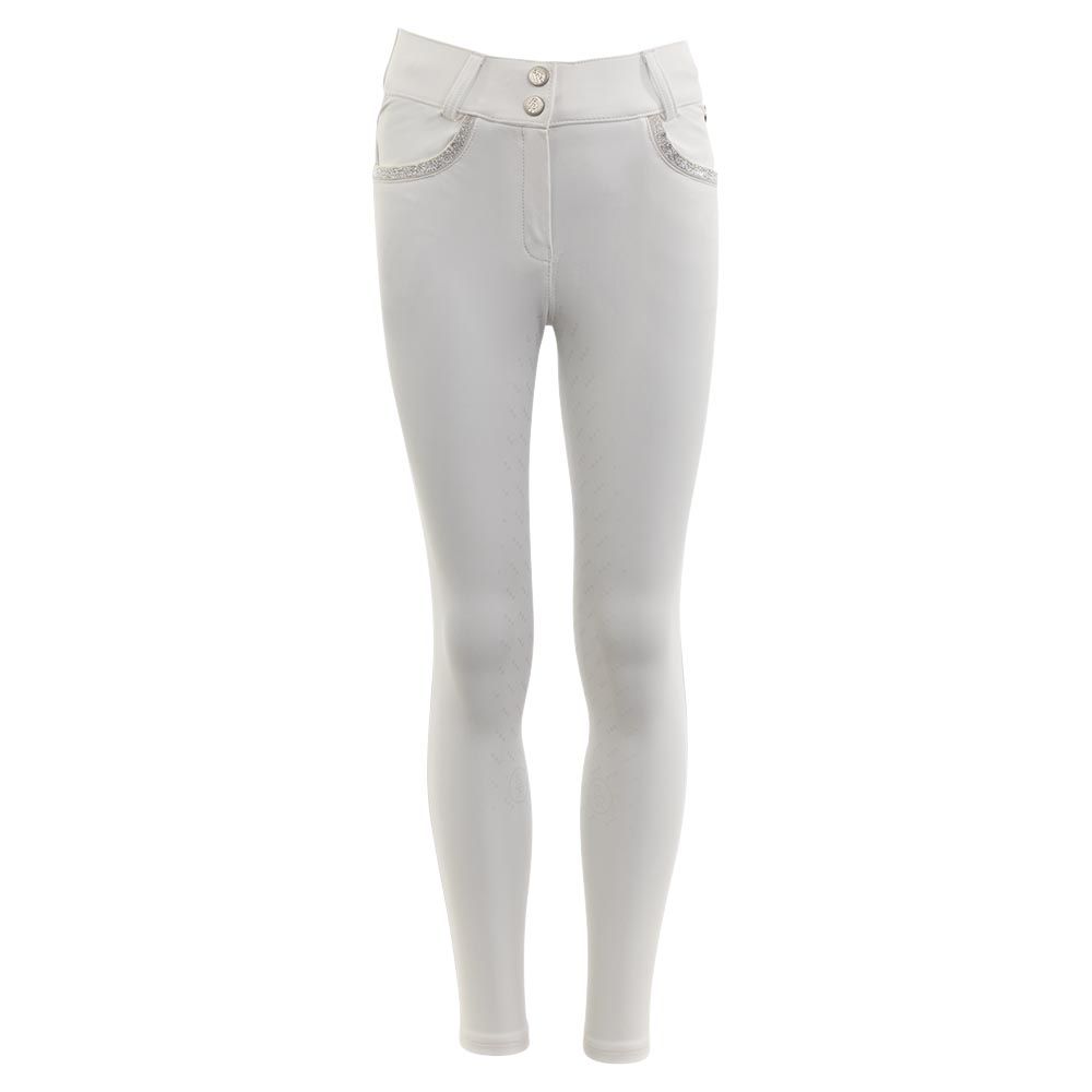 White children's riding breeches by BR. The Merida children's riding breeches are made of a water-repellent 4-way stretch fabric that fits perfectly and stretches well while riding. The multi-layered fabric is dimensionally stable, moisture-regulating and extremely quick-drying, which ensures a high level of wearing comfort.