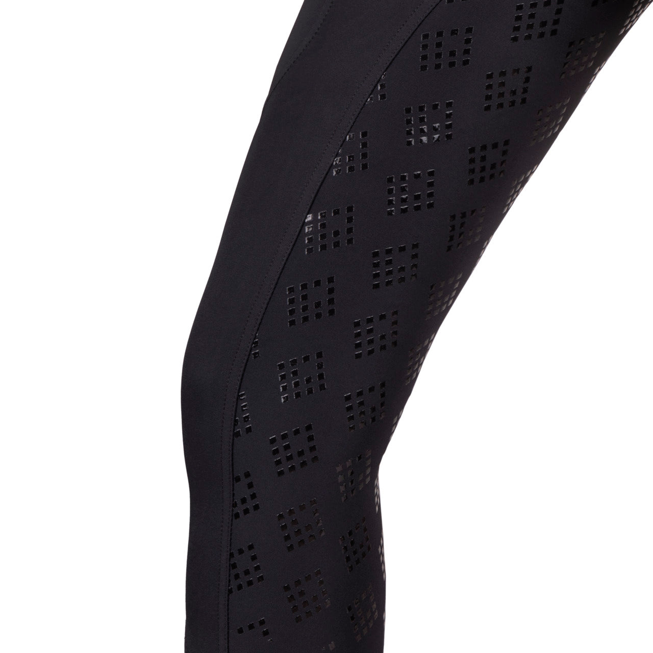 De Micah rijbroek uit onze zomercollectie heeft een comfortabele hoge taille. De full seat grip is een medium grip, in de vorm van kristallen. De beenzakken zorgen ervoor dat je gemakkelijk je telefoon mee kunt dragen tijdens het rijden.