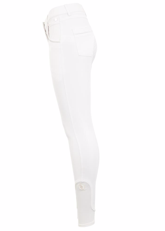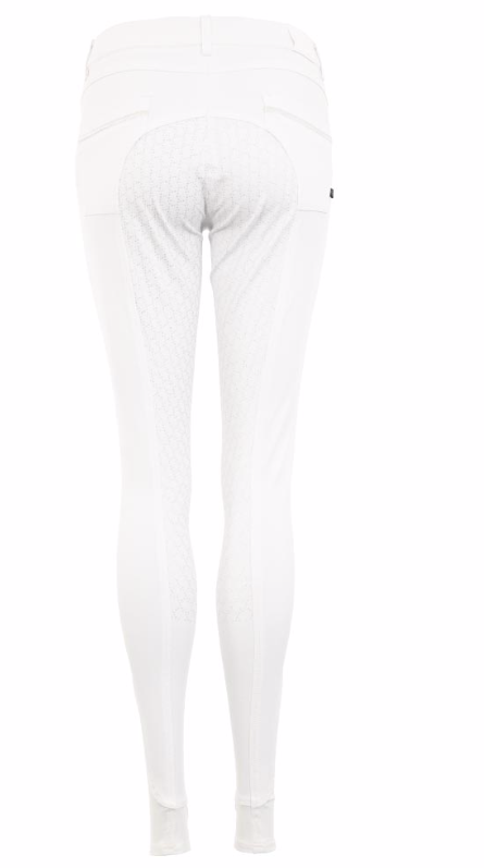 These elegant women's competition riding breeches stand out due to the shiny BR logos made of silver stitching, the silver closure and the shiny silicone print. The silicone seat provides extra grip and a more stable seat. The breeches have slit pockets at the front and patch pockets at the back. The edges of the pockets are embellished with silver decorative bands.