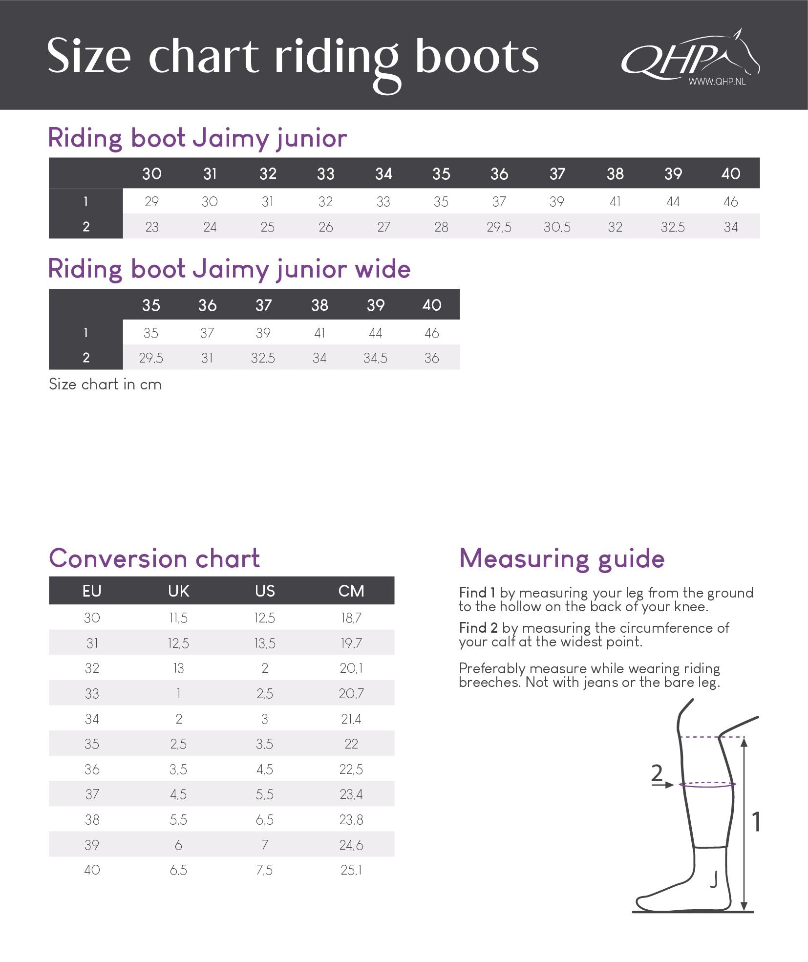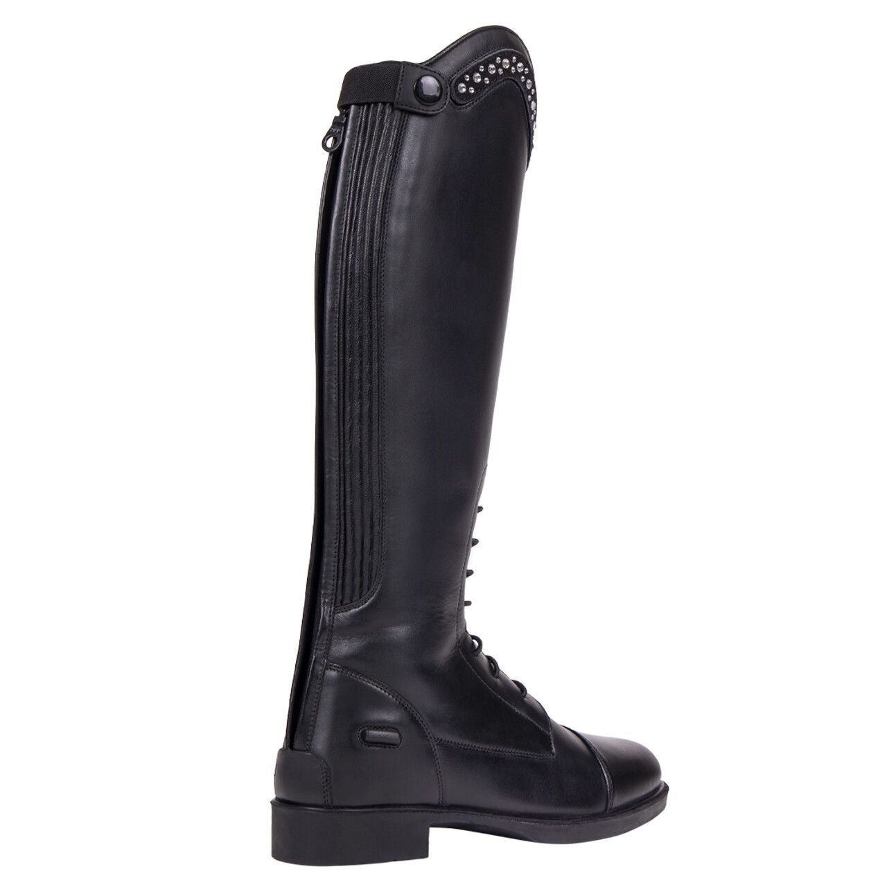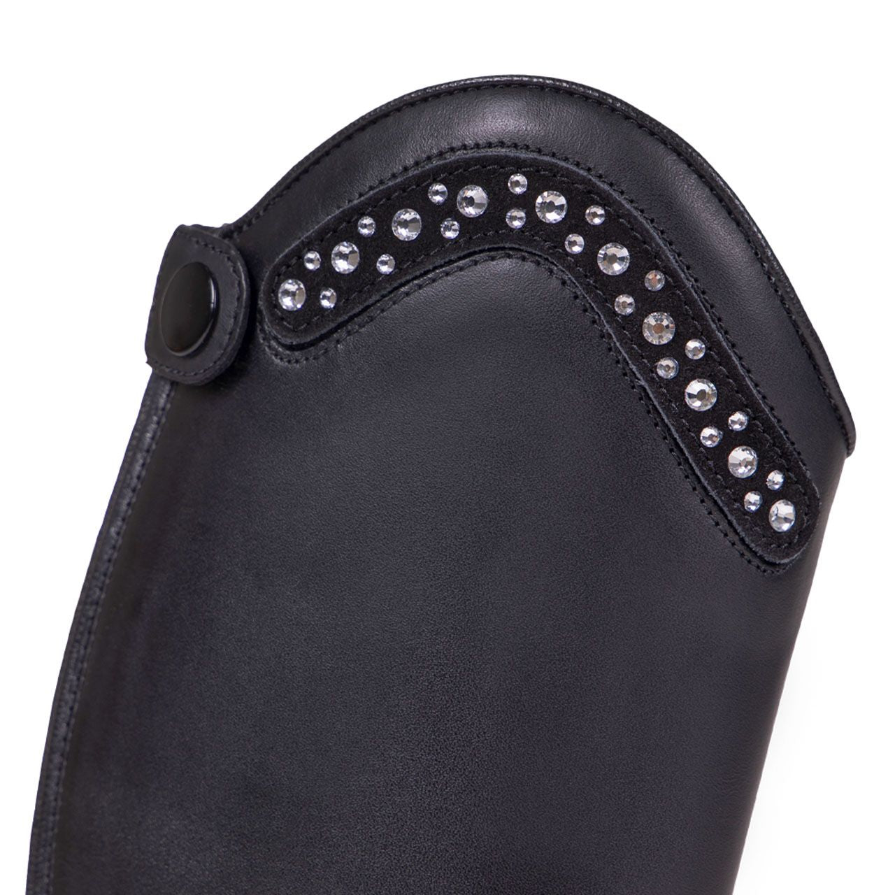 Riding boots Jaimy have a close fit with a medium-high arch. The boot comes standard with a top with stones. Other tops are available separately. The boot is equipped with a zipper at the back and also has an elastic insert.