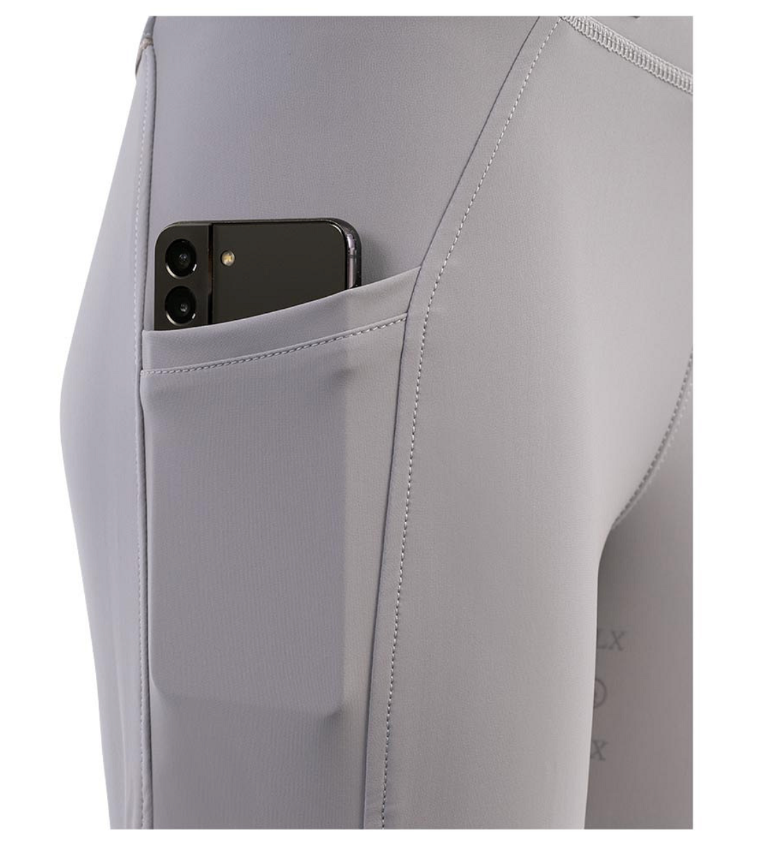 The leggings have deep pockets on both sides where you can store a mobile phone. The stretch waistband has belt loops. The silicone seat with the stylish BR/CLX pattern provides extra grip and a stable seat.