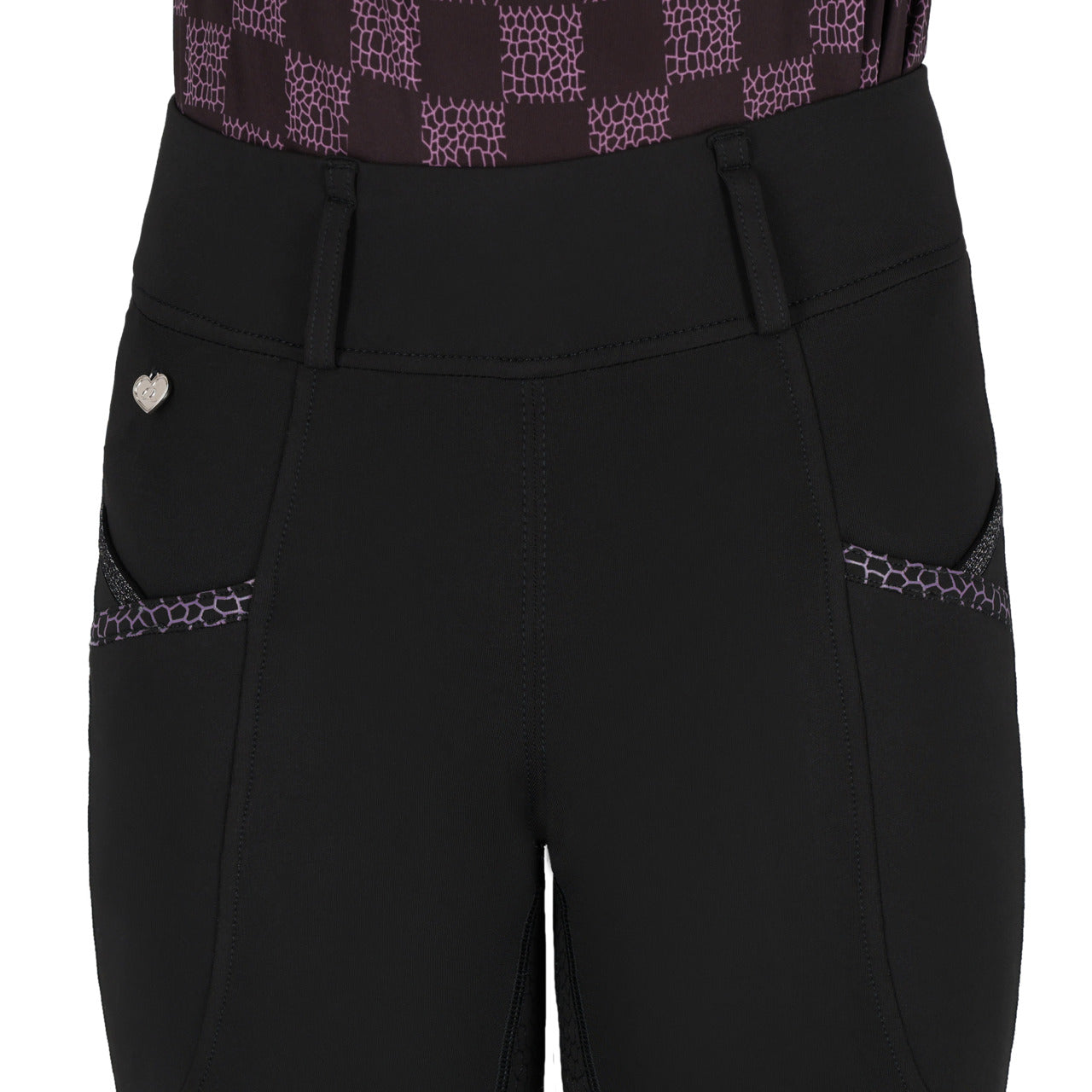 De Lize rijlegging uit de wintercollectie is ademend en vormvast, gemaakt van 4-way stretchstof voor optimale bewegingsvrijheid. Met een hoge taille en riemlussen biedt deze rijlegging een comfortabele pasvorm. De steekzakken en decoratieve achterzakken voegen een leuke touch toe, terwijl de Q-pin in de vorm van een hartje het geheel compleet maakt.