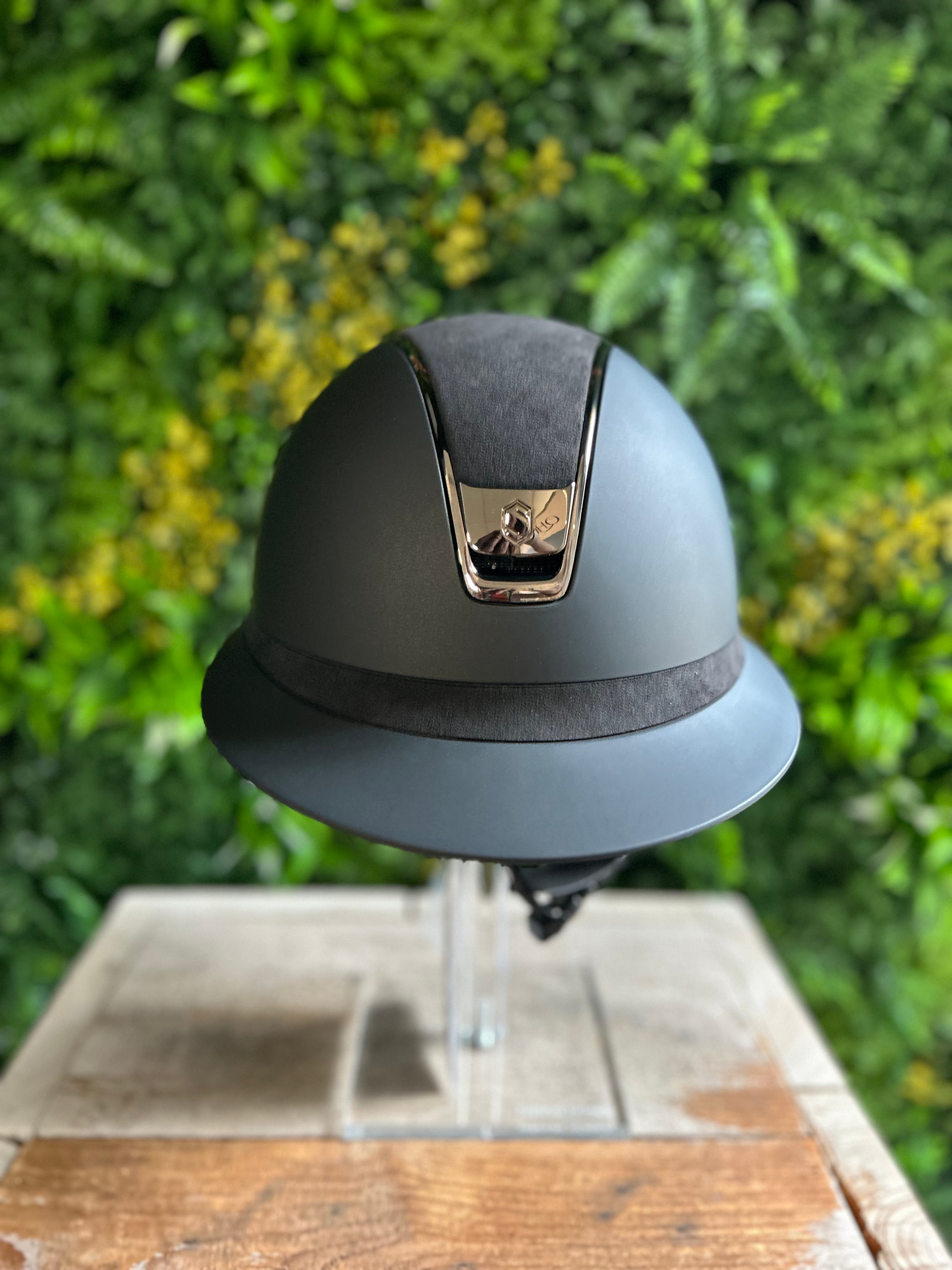 This Samshield 2.0 Miss Shield Shadowmat Alcantara top and frontal band is finished with a shadowmat outer shell, and is available in 2 basic colors, blue and black. The helmet is equipped with the popular Miss Shield peak and is equipped with a chrome black trim and blazon. The top and frontal band are equipped with Alcantara. The straps on the helmet are made of artificial leather. This helmet is supplied including liner and a protection backpack. Inquire about the possibilities and the associated price/stock of this Samshield 2.0 Miss Shield Shadowmat Alcantara top and frontal band. This is due to a possible delivery time of several weeks. Would you prefer something different on this helmet? Please send us an email.