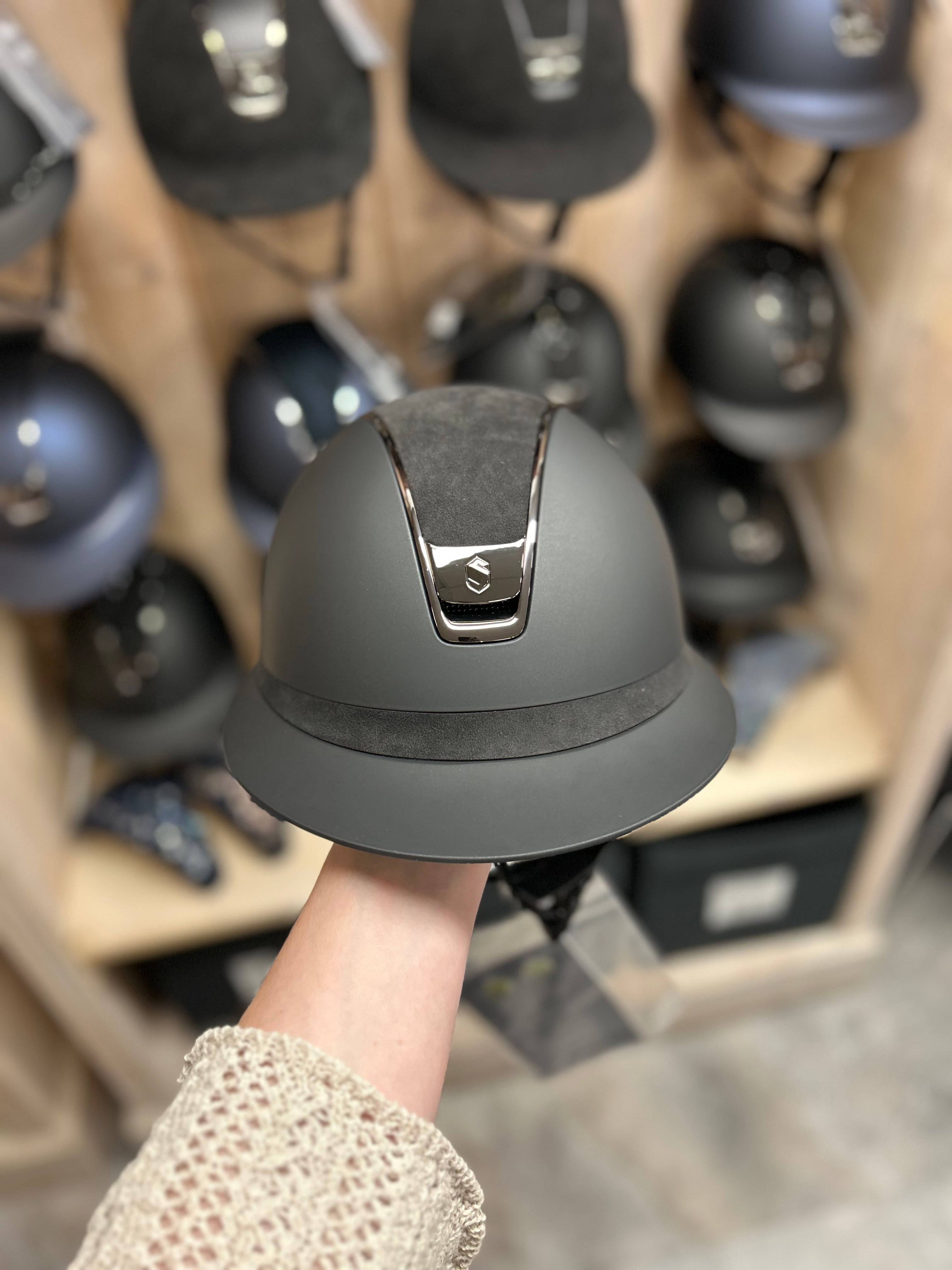 The outer part of this Samshield 2.0 Miss Shield Shadowglossy Alcantara top and frontal band is made of polycarbonate, which is a material that is used for motorcycle helmets, among other things. The helmet is covered with a scratch-resistant layer. Various shells are available (S, M, L and XL). Each shell is suitable for 4 to 5 sizes of liners, with a view to an optimal fit for the head. The liners are available from size 52 to 64. With this system it is also possible to let the helmet grow with younger riders. The interchangeable inner liners are equipped with a clip system so that they can be easily removed and put in for washing (max. 30° C).