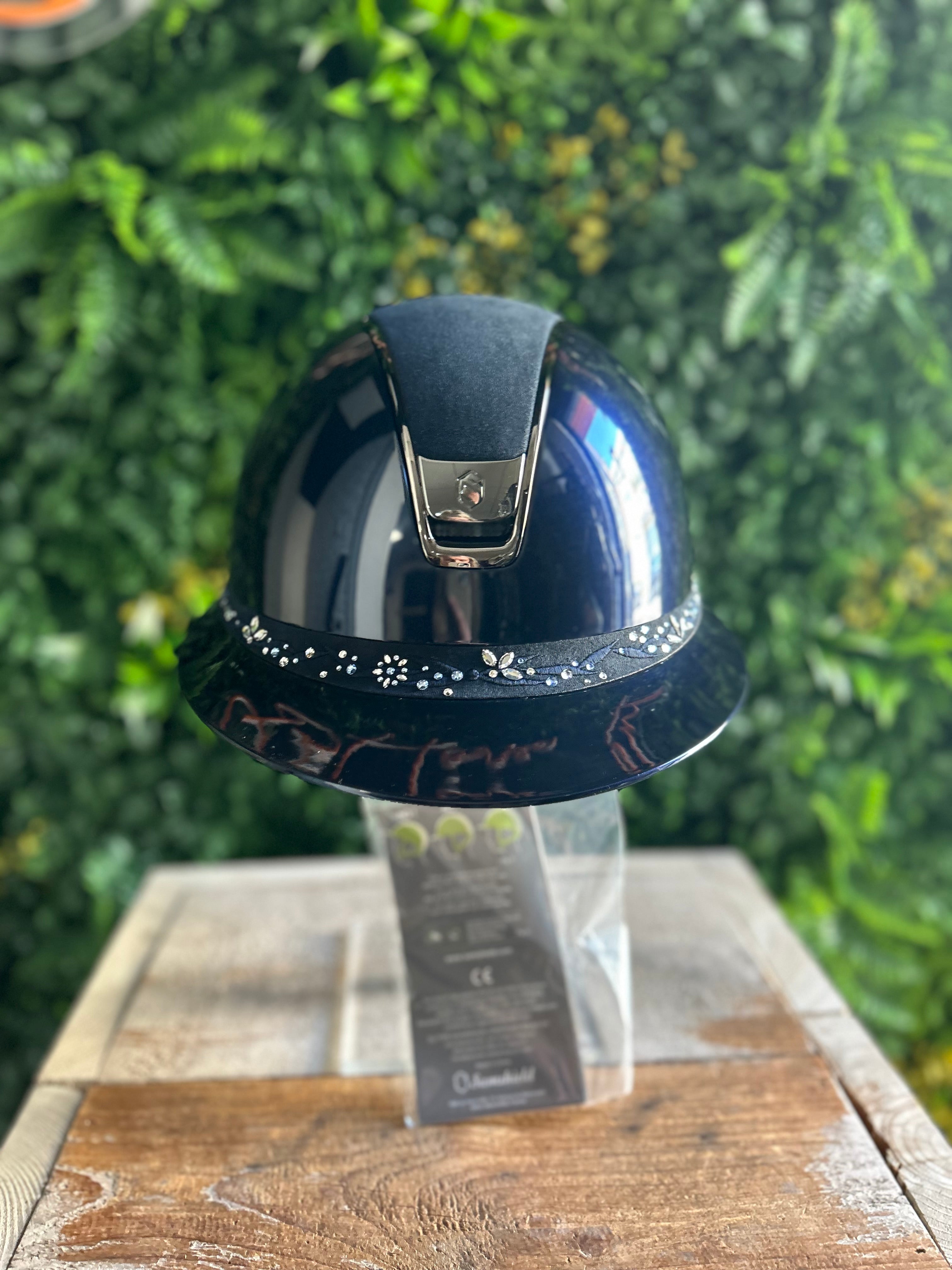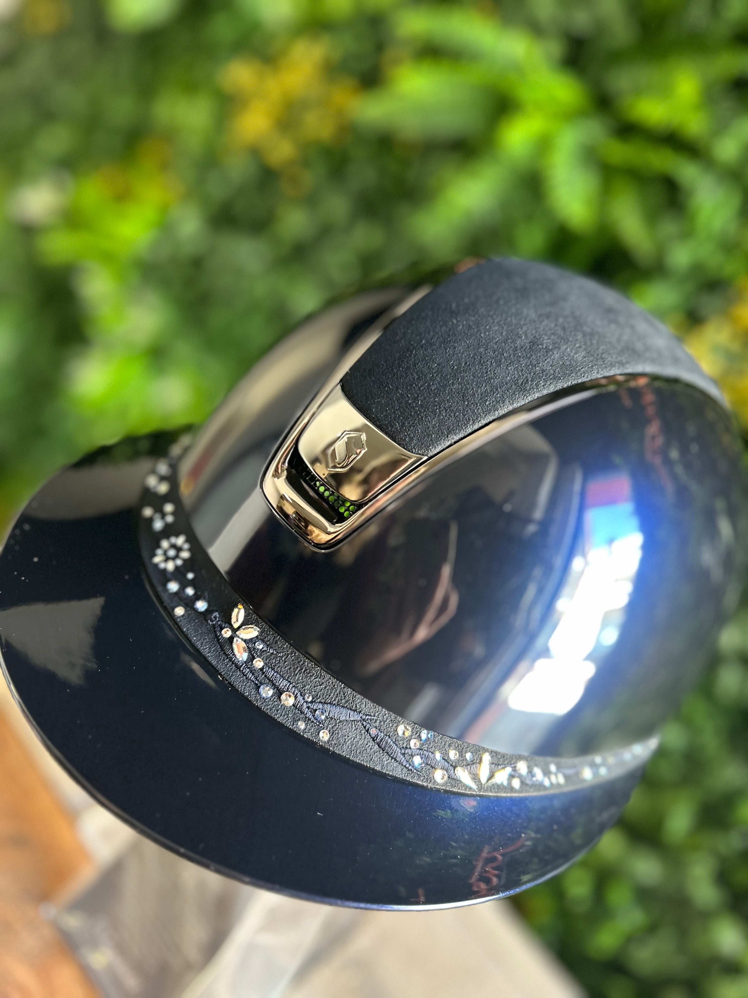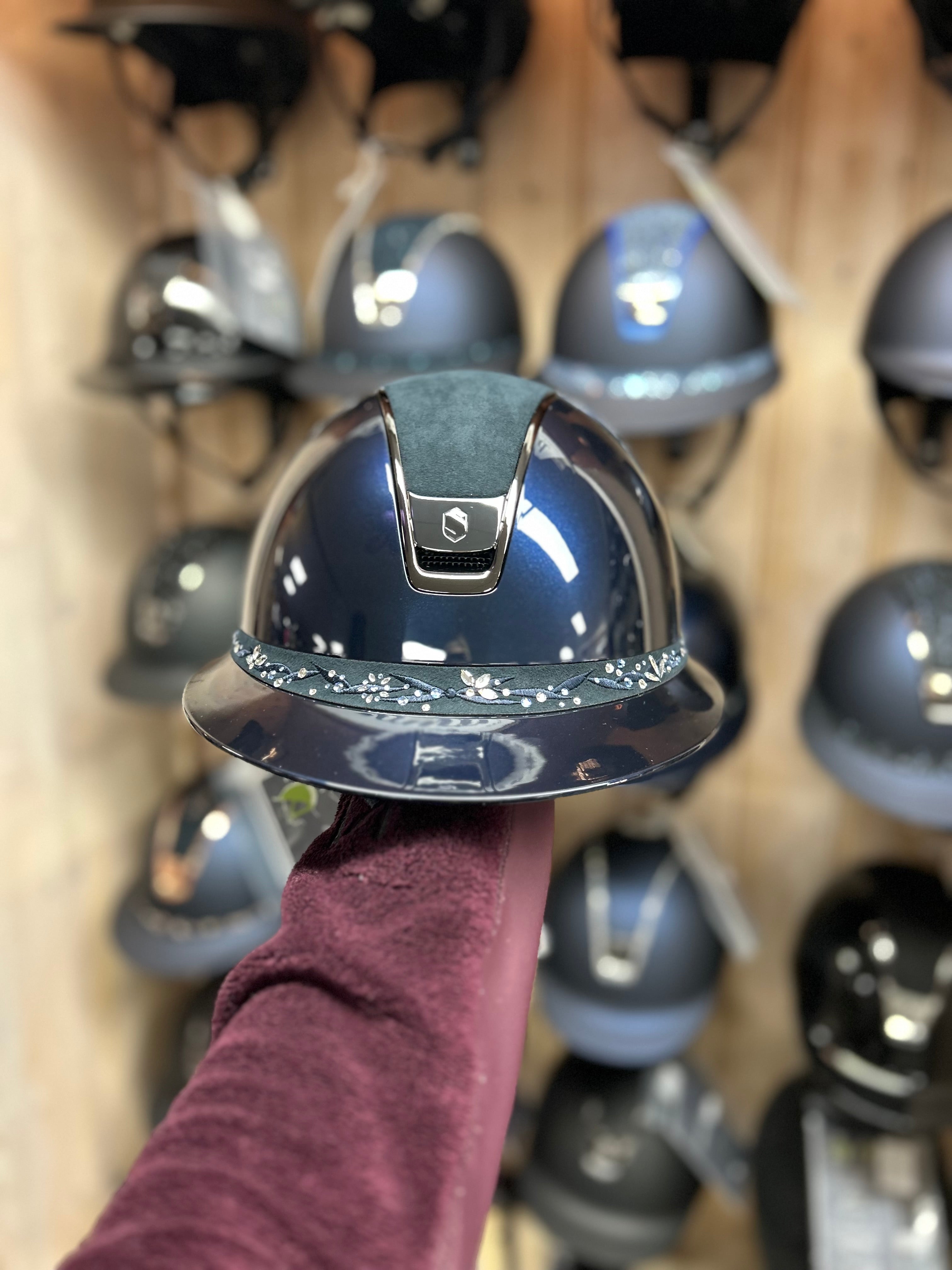 This Samshield 2.0 Flower Swarovski Jewelry frontalband is finished with a Shadowmatt outer shell, and is available in 2 basic colors, black and blue. The helmet is equipped with a chrome trim with 300 Swarovski stones and blazon. The straps on the helmet are made of leather. This helmet comes with a liner and a protection backpack. Inquire about the possibilities and the associated price/stock of this Samshield 2.0. This is in connection with a possible delivery time of several weeks. Would you prefer something different on this helmet? Then please send us an email.