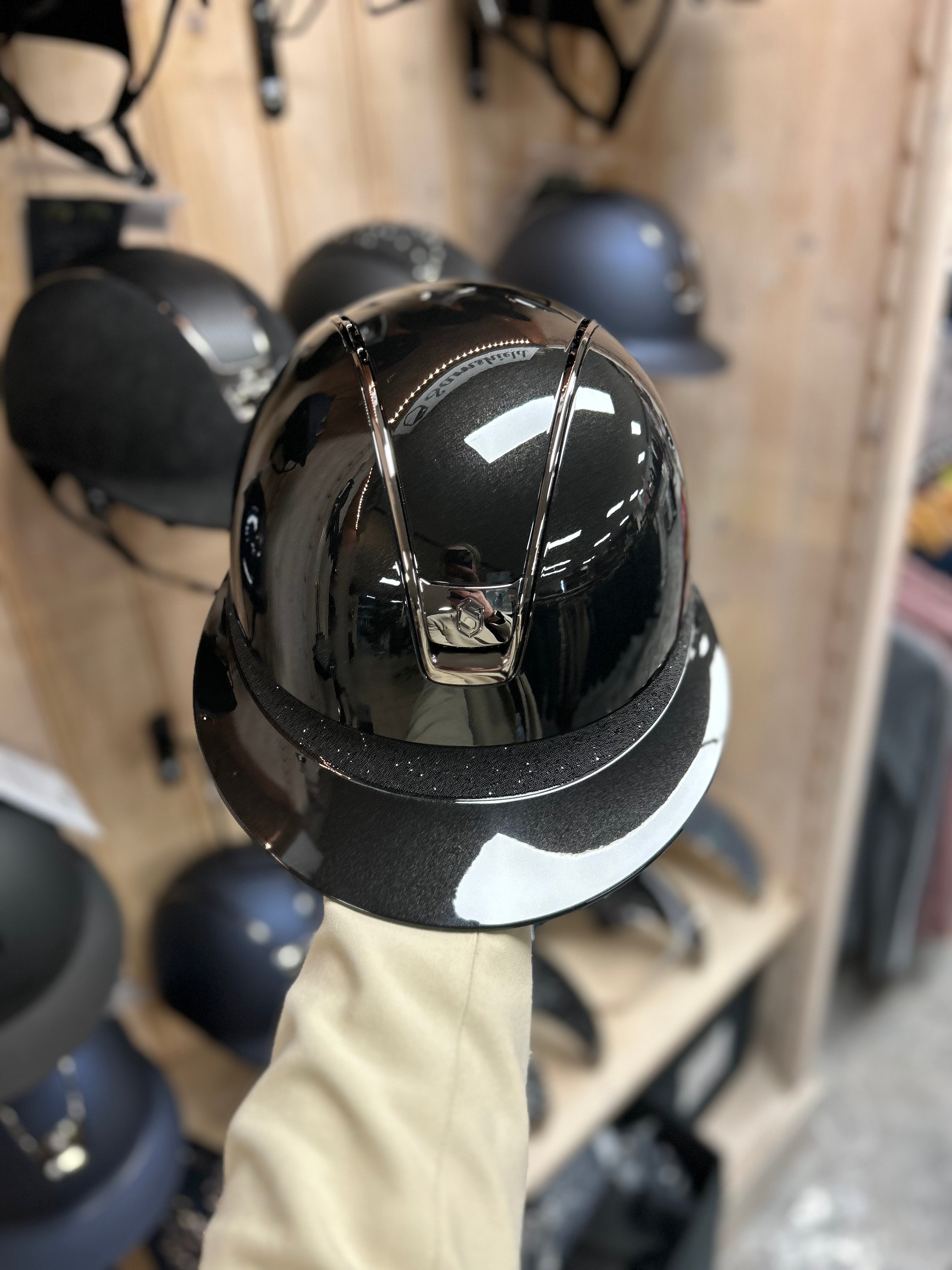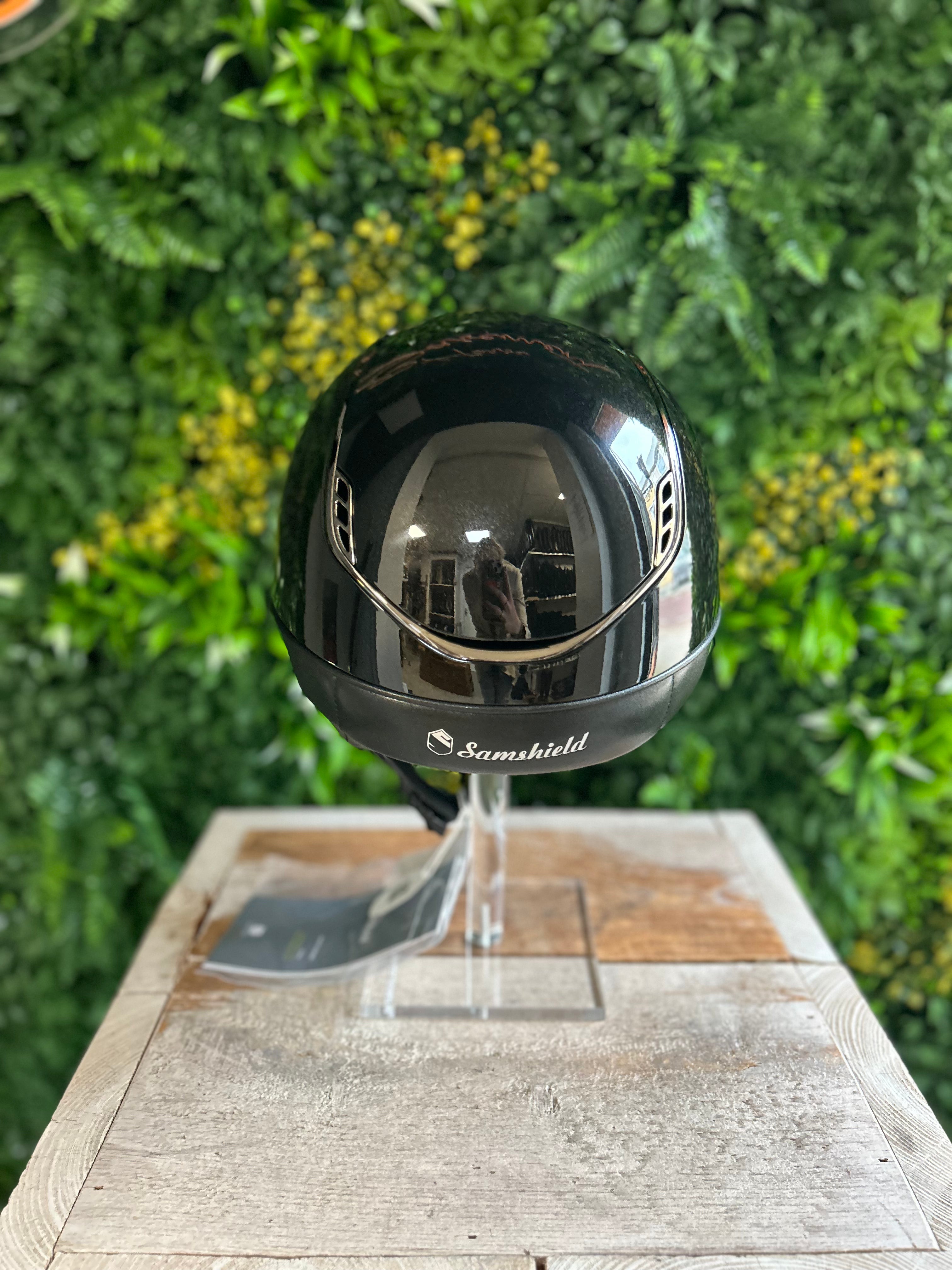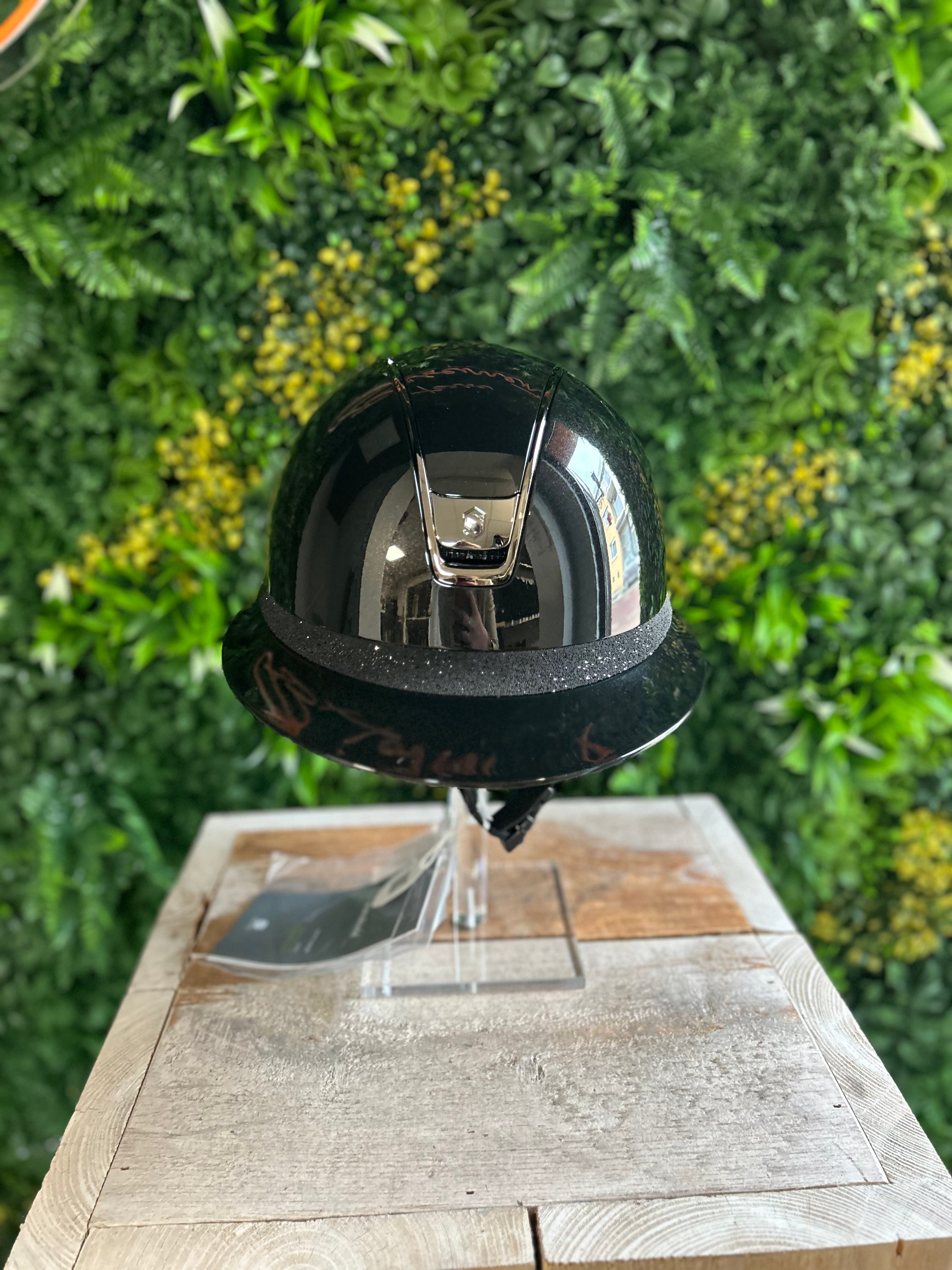 This Samshield 2.0 Miss Shield Shadowglossy Crystal Fabric frontal band is finished with a shadowglossy outer shell and is available in 2 basic colors, black & blue. The helmet is equipped with the popular Miss Shield peak and is equipped with a black chrome trim and black chrome blazon. The frontal band is also equipped with crystal fabric. The straps on the helmet are made of artificial leather. This helmet is supplied including liner and a protection backpack. Inquire about the possibilities and the associated price/stock of this Samshield 2.0 Miss Shield Shadowglossy Crystal Fabric frontal band. This is due to a possible delivery time of several weeks. Would you prefer something different on this helmet? Please send us an email.