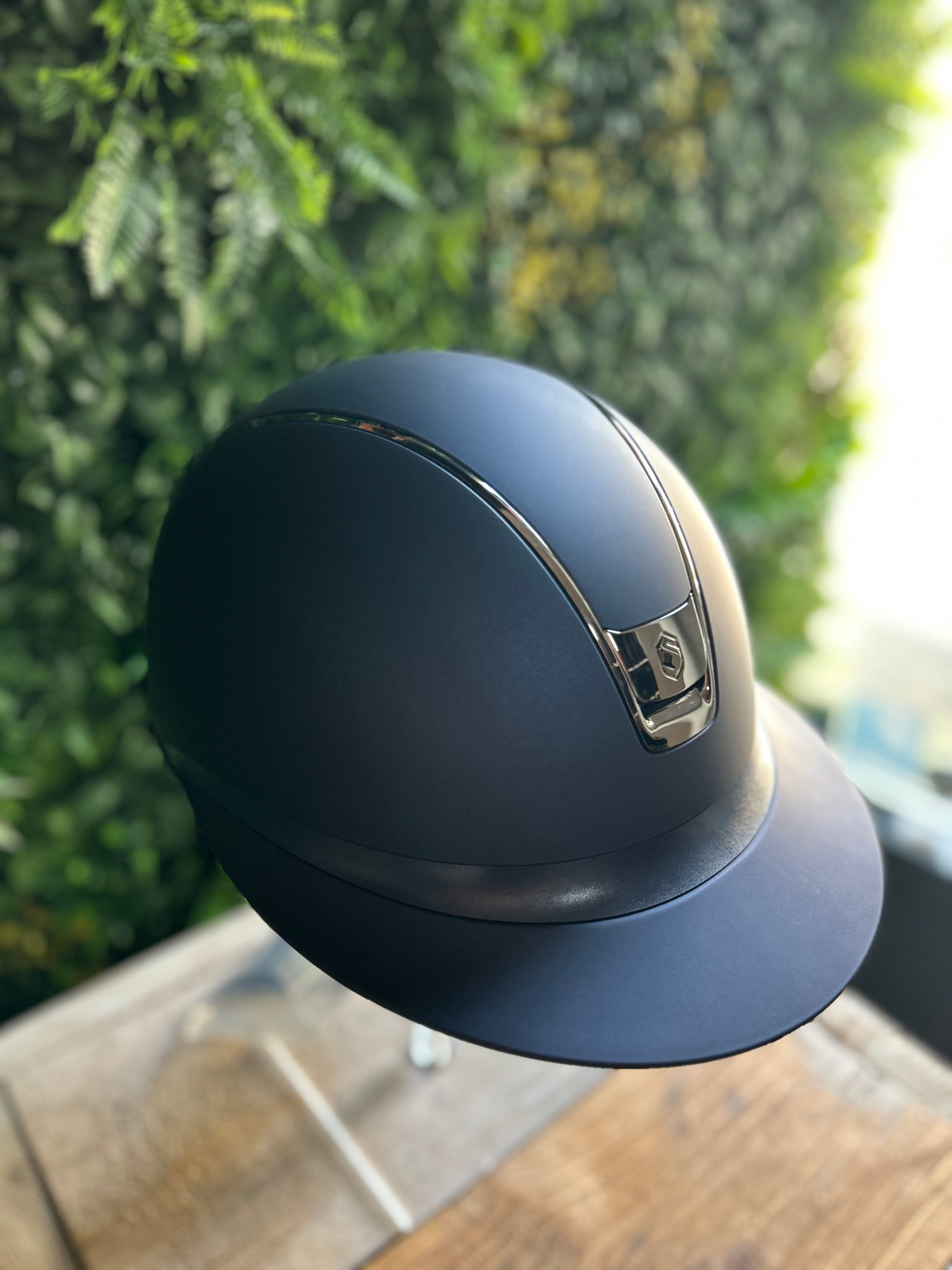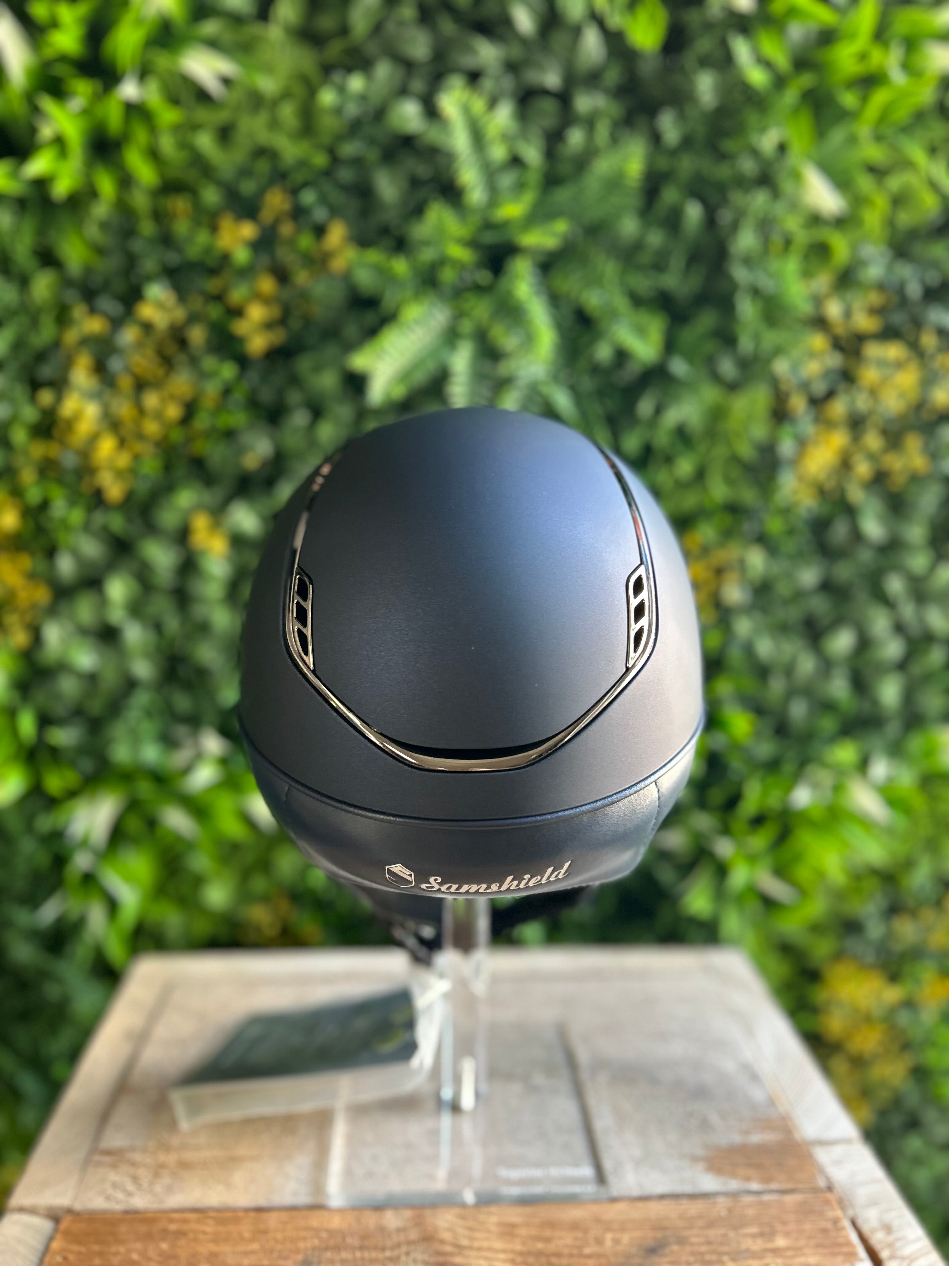 This Samshield 2.0 Miss Shield Shadowmatt is finished with a shadowmatt outer shell and is available in 3 basic colours, black, blue and brown. The helmet is equipped with the popular Miss Shield peak and is equipped with a black chrome trim and blazon. The straps on the helmet are made of artificial leather. This helmet is supplied including liner and a fabric cap cover. Inquire about the possibilities and the associated price/stock of this Samshield 2.0 Miss Shield Shadowmatt. This is due to a possible delivery time of several weeks. Would you prefer something different on this helmet? Then please send us an email.