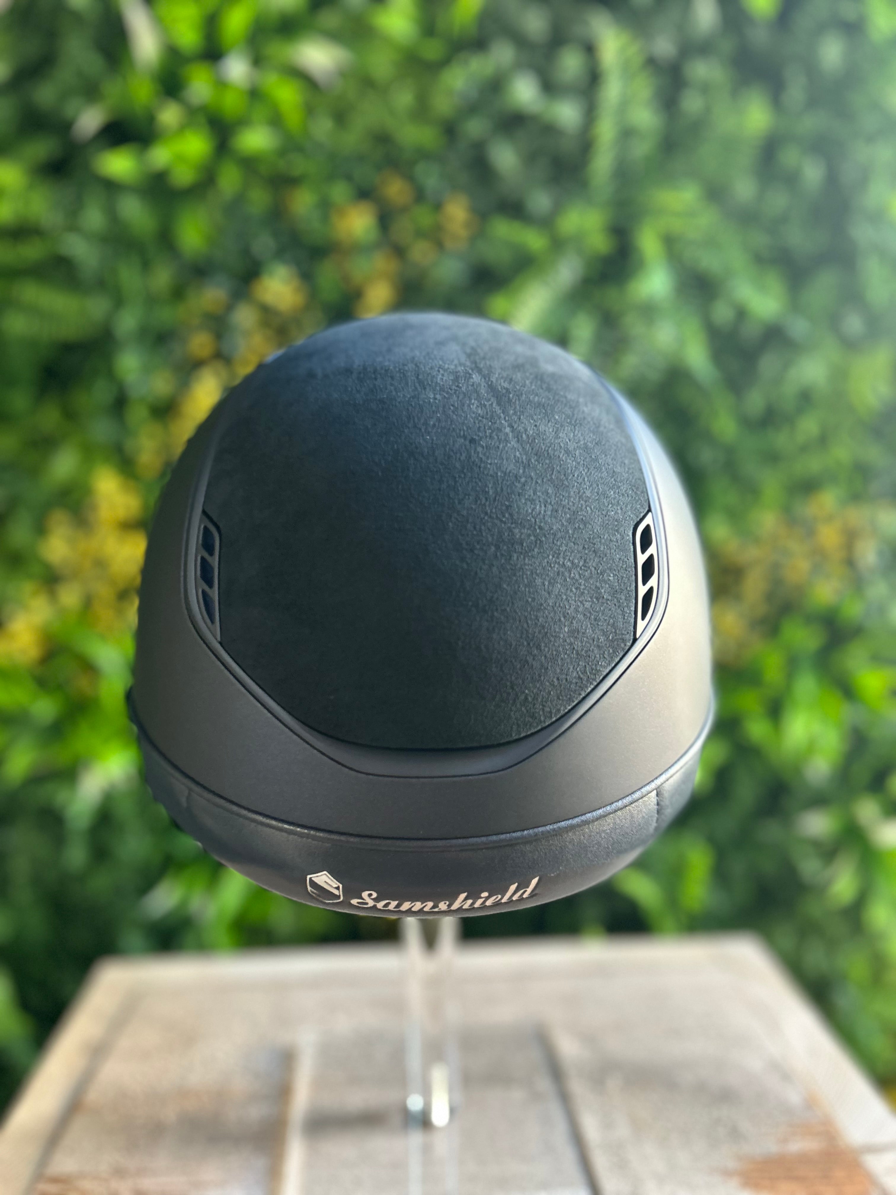 The outer part of this Samshield 2.0 Miss Shield Shadowglossy Alcantara top and frontal band is made of polycarbonate, which is a material that is used for motorcycle helmets, among other things. The helmet is covered with a scratch-resistant layer. Various shells are available (S, M, L and XL). Each shell is suitable for 4 to 5 sizes of liners, with a view to an optimal fit for the head. The liners are available from size 52 to 64. With this system it is also possible to let the helmet grow with younger riders. The interchangeable inner liners are equipped with a clip system so that they can be easily removed and put in for washing (max. 30° C).