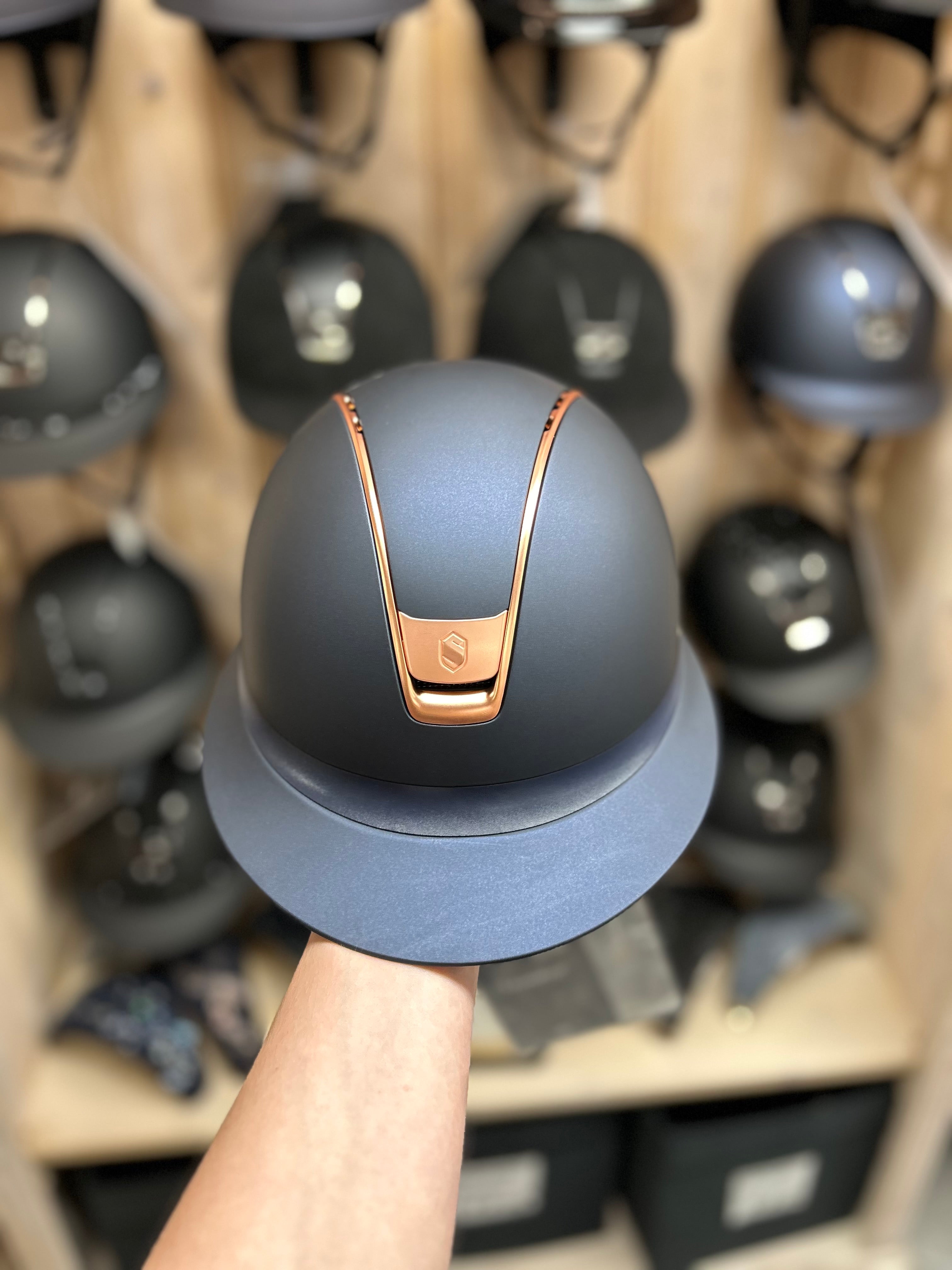 This Samshield 2.0 Miss Shield Shadowmatt matte rosé trim and blazon is finished with a shadowmatt outer shell and is available in 3 basic colours, black, blue and brown. The helmet is equipped with the popular Miss Shield peak and is finished with a matt rose gold trim and blazon. The straps on the helmet are made of artificial leather. This helmet is supplied including liner and a protection backpack. Inquire about the possibilities and the associated price/stock of this Samshield 2.0 Miss Shield Shadowmatt matte rosé trim and blazon. This is due to a possible delivery time of several weeks. Would you prefer something different on this helmet? Please send us an email.