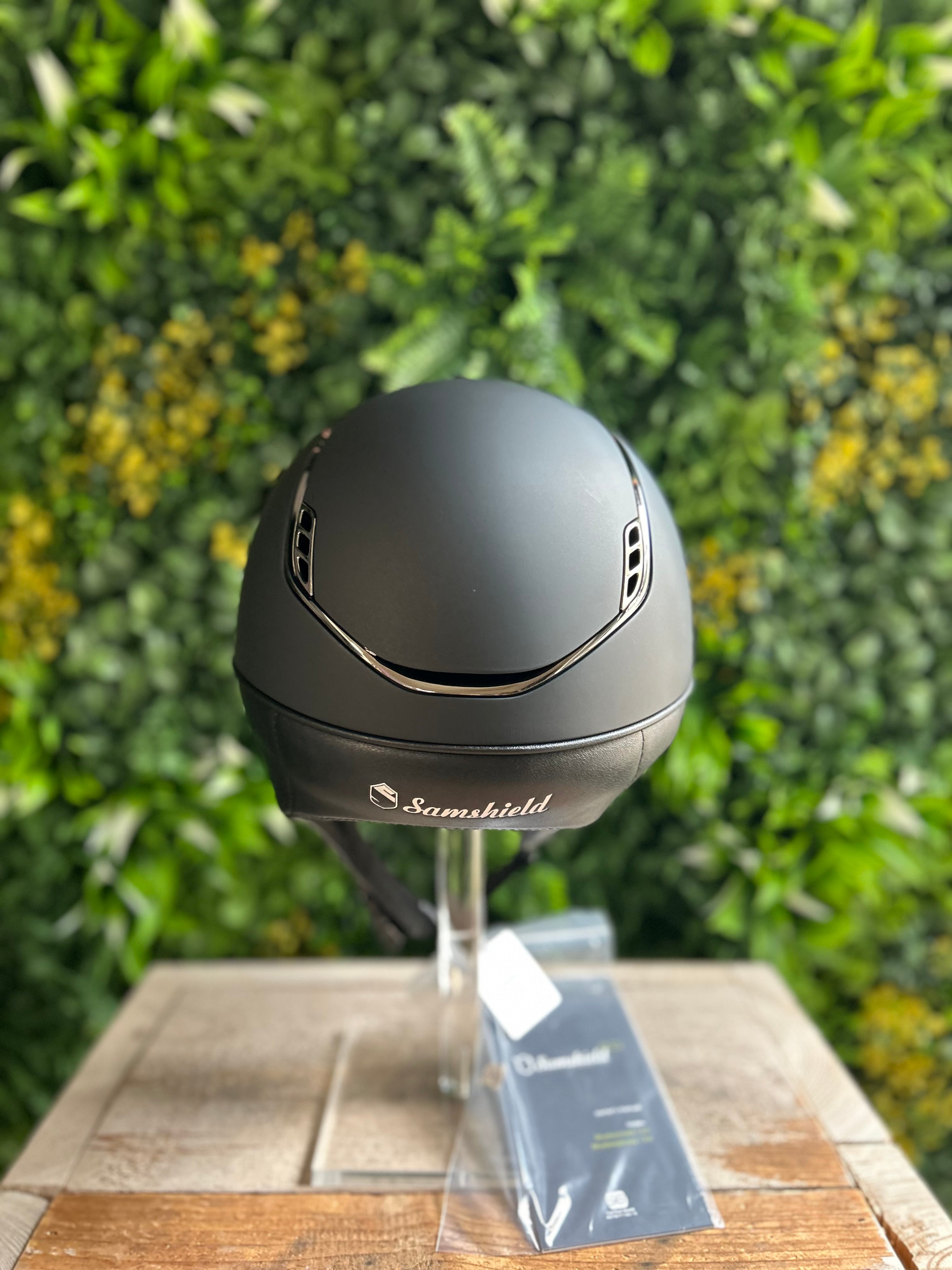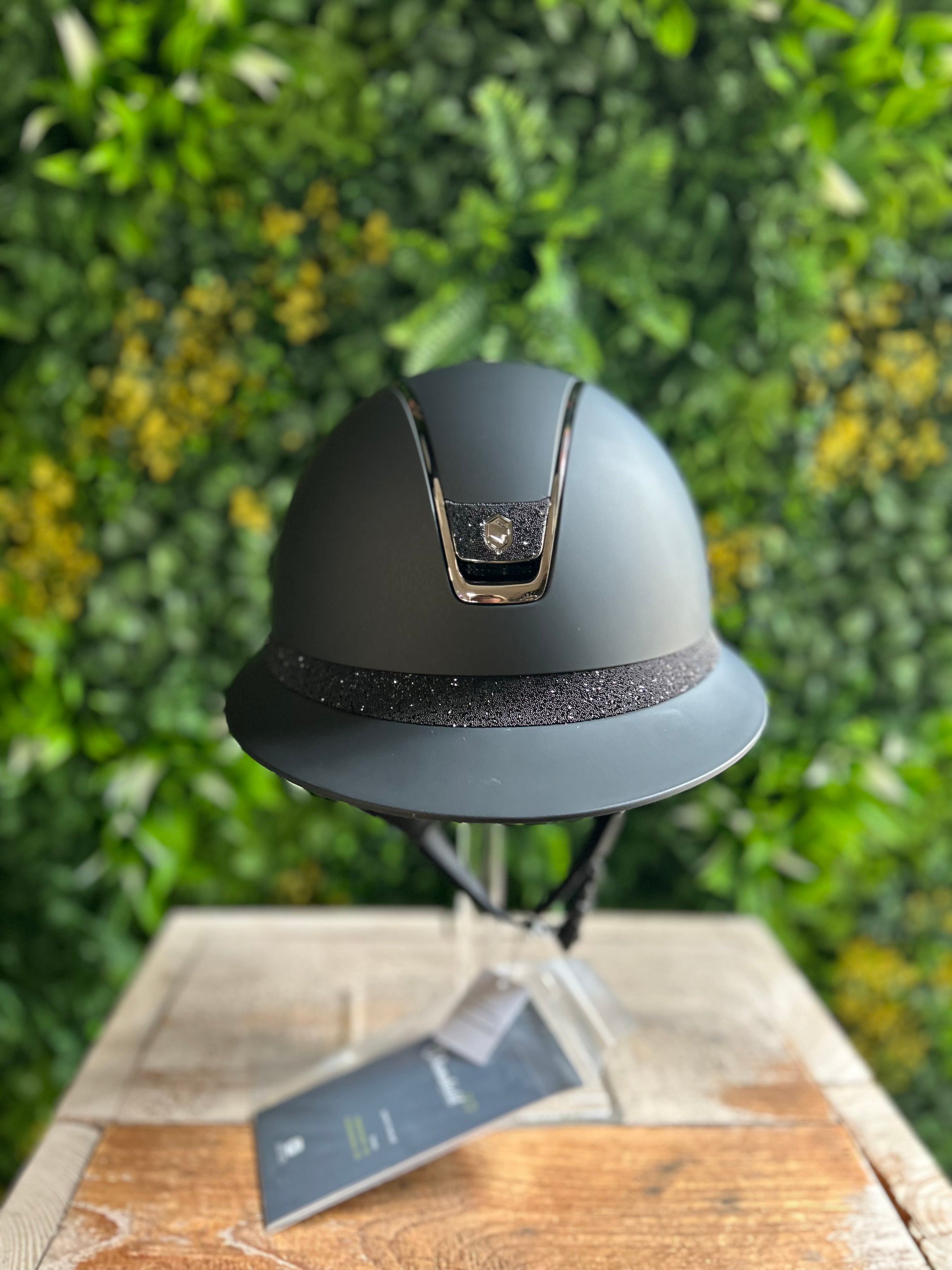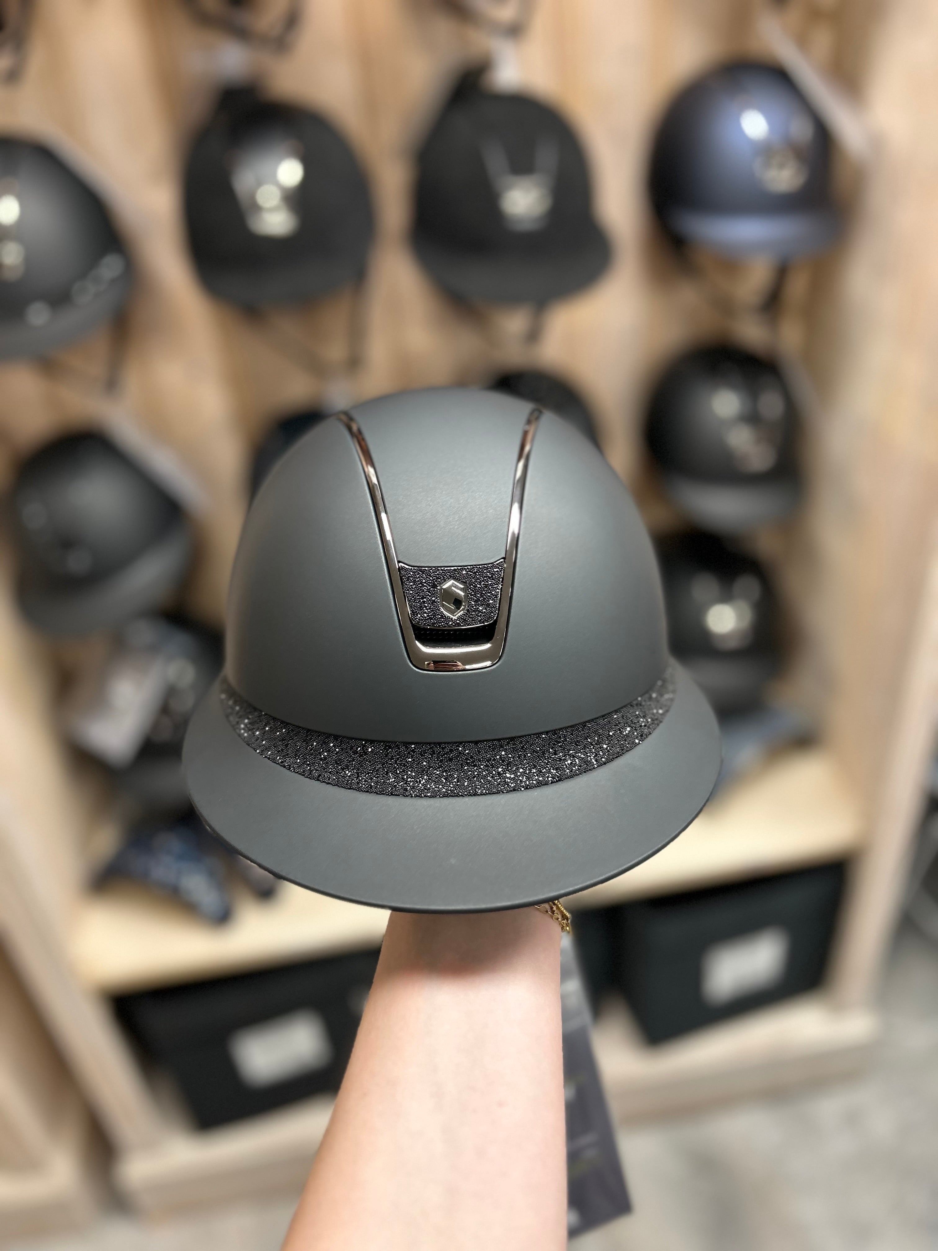 This Samshield 2.0 Miss Shield Shadowmatt Crystal Fabric frontal band and blazon is finished with a shadowmatt outer shell and is available in 3 basic colours, black, blue and brown. The helmet is equipped with the popular Miss Shield peak and is equipped with a black chrome trim and black crystal fabric blazon. The frontal band is also equipped with crystal fabric. The straps on the helmet are made of artificial leather. This helmet is supplied including liner and a protection backpack. Inquire about the possibilities and the associated price/stock of this Samshield 2.0 Miss Shield Shadowmatt Crystal Fabric frontal band and blazon. This is due to a possible delivery time of several weeks. Would you prefer something different on this helmet? Please send us an email.