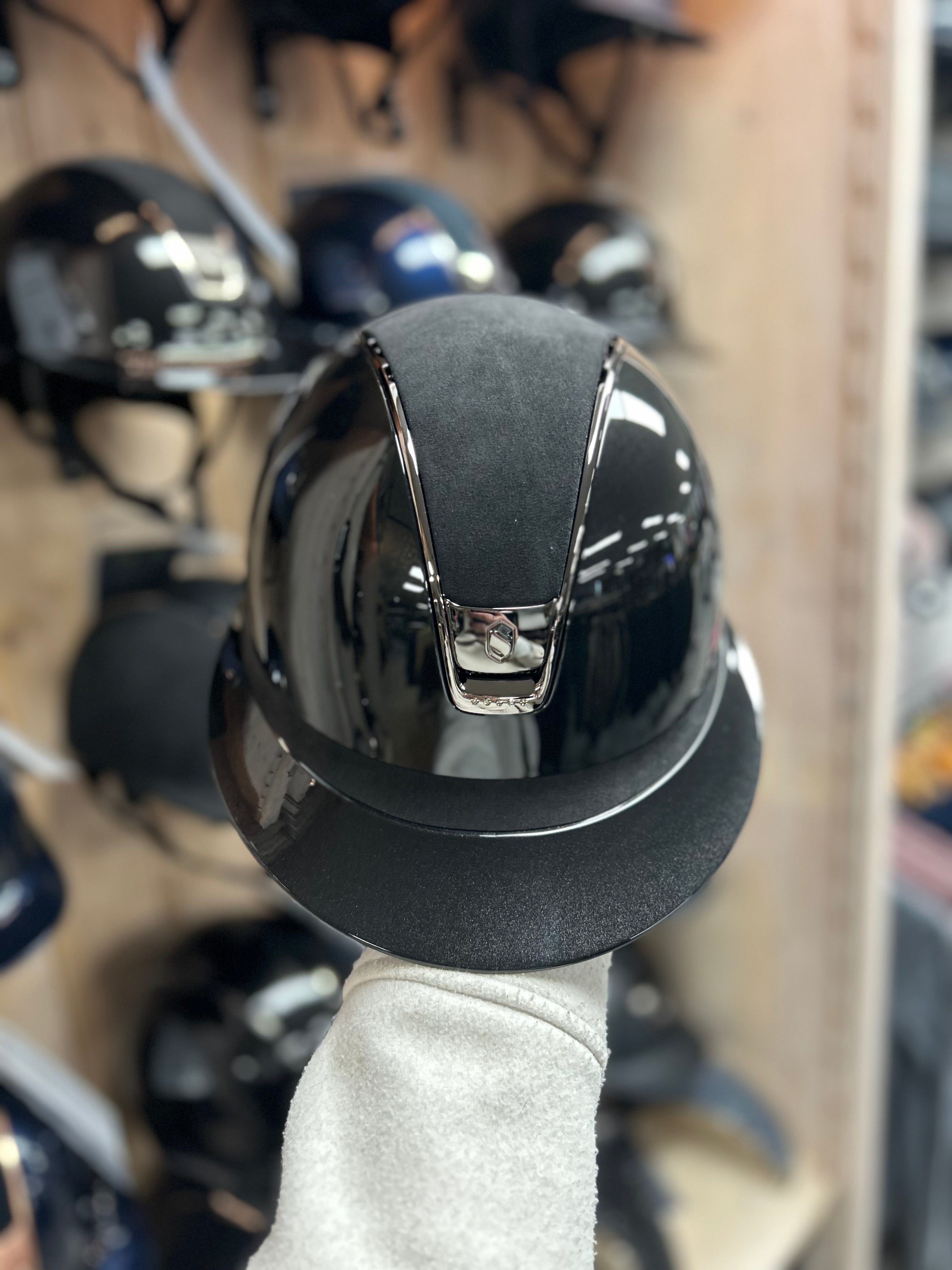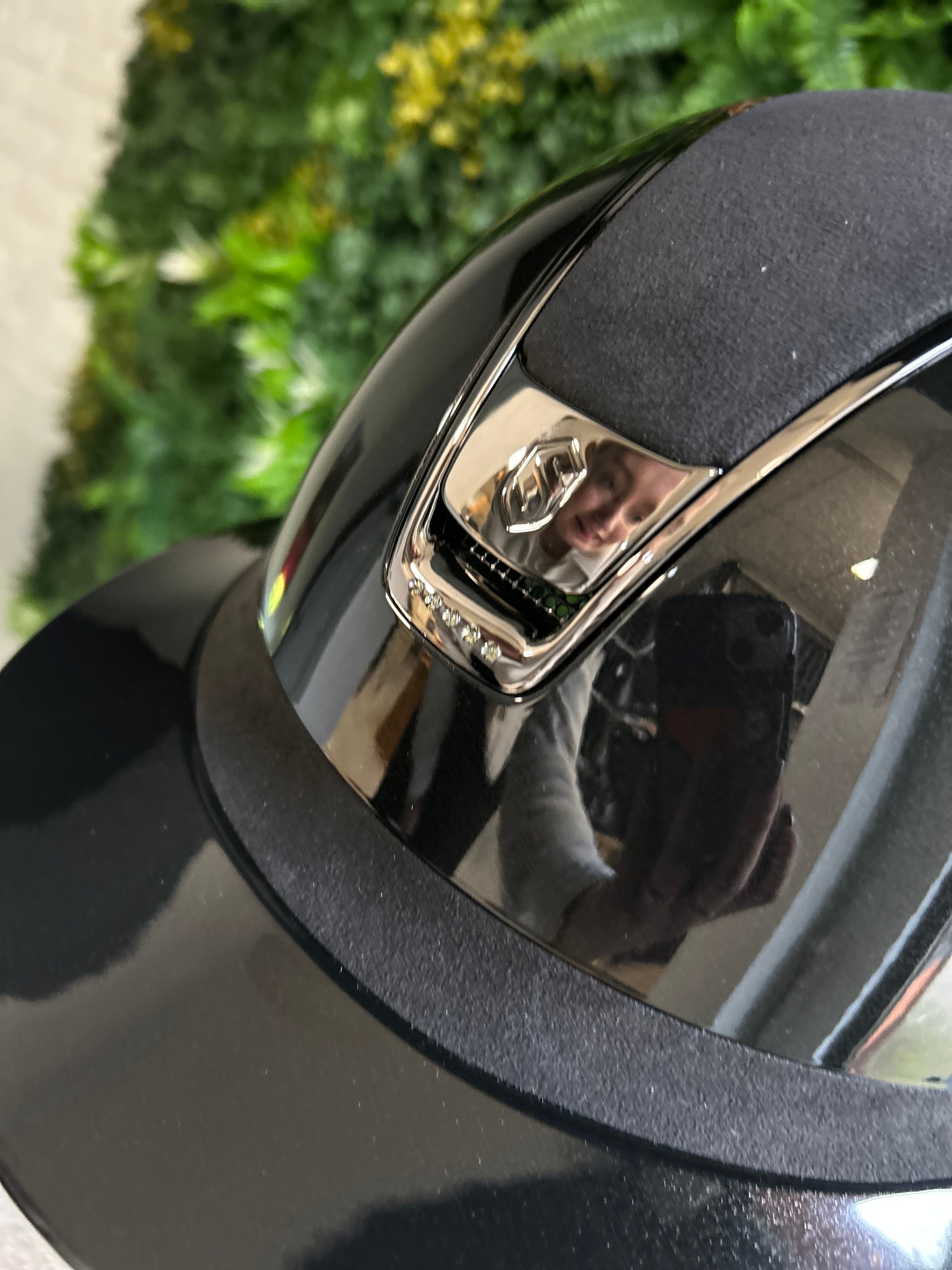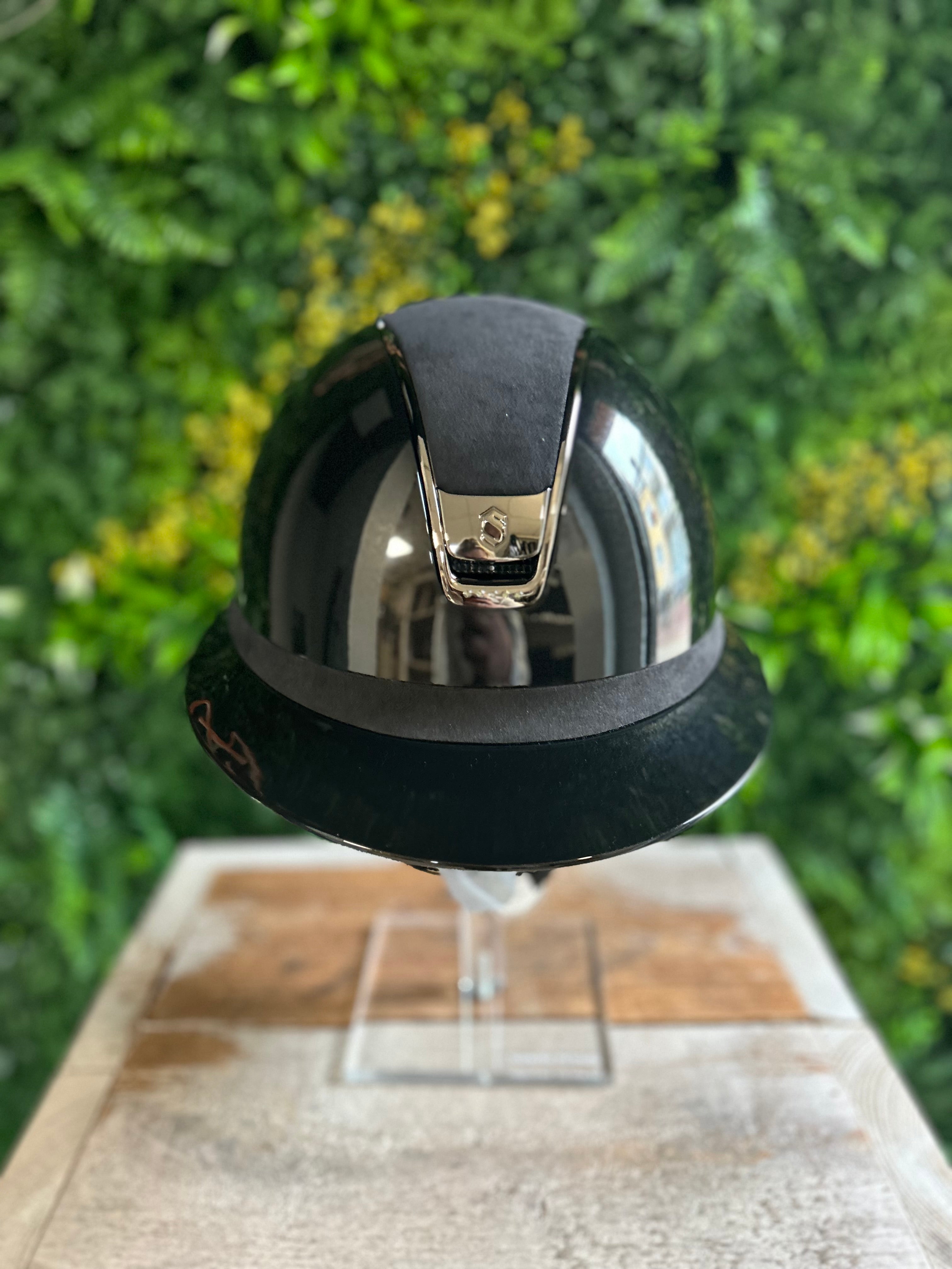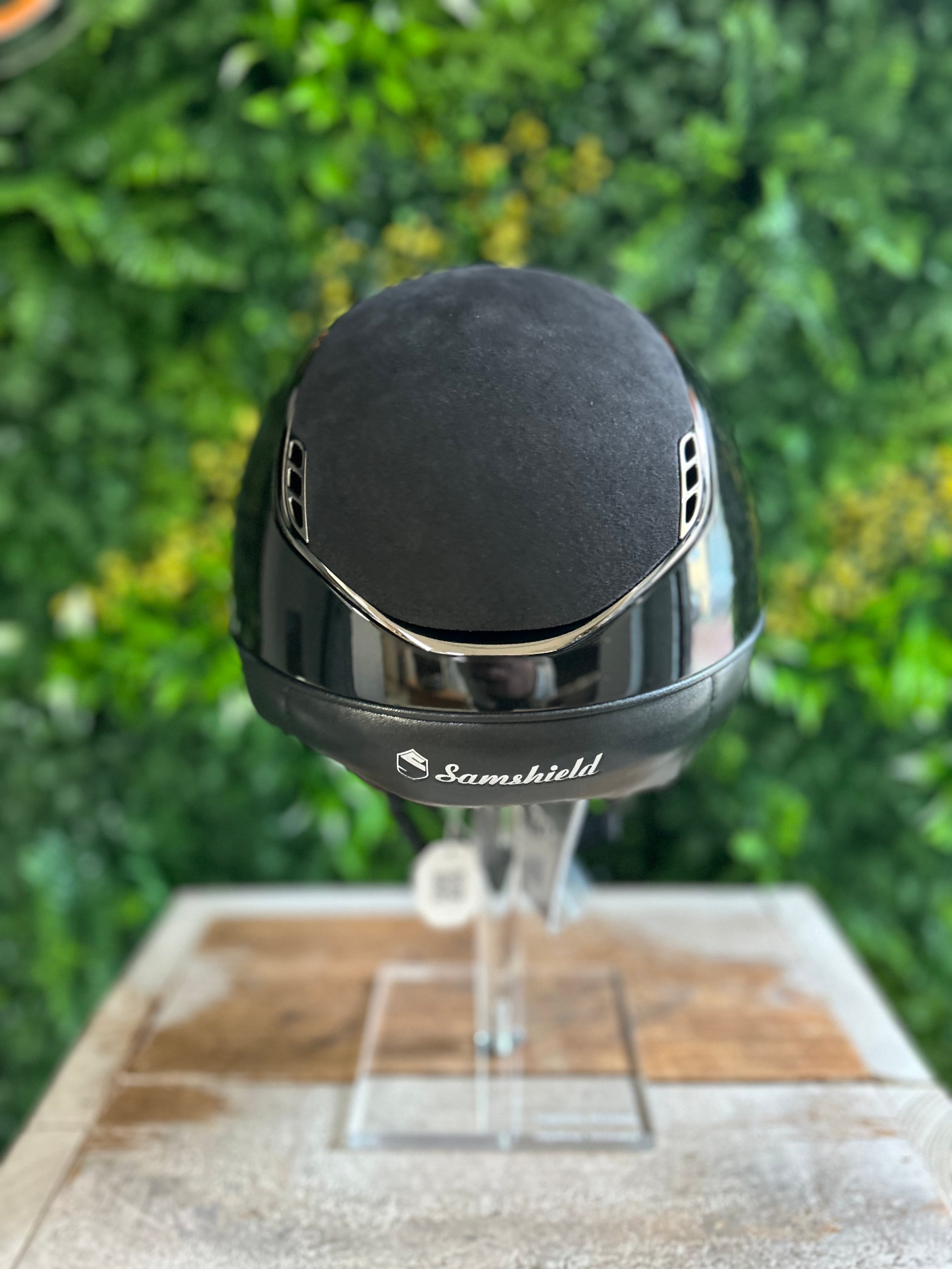This Samshield 2.0 Miss Shield Shadowglossy Alcantara top and Frontal Band with 5 Swarovski crystal stones under the blazon is finished with a shadowglossy outer shell and is available in 2 basic colors, black and blue. The helmet is equipped with the popular Miss Shield peak and is equipped with a chrome trim and silver crystal fabric blazon. The top is equipped with Alcantara. The straps on the helmet are made of artificial leather. This helmet is supplied including liner and a protection backpack. Inquire about the possibilities and the associated price/stock of this Samshield 2.0 Miss Shield Shadowglossy. This is in connection with a possible delivery time of a few weeks. Would you prefer something different on this helmet? Please send us an email.
