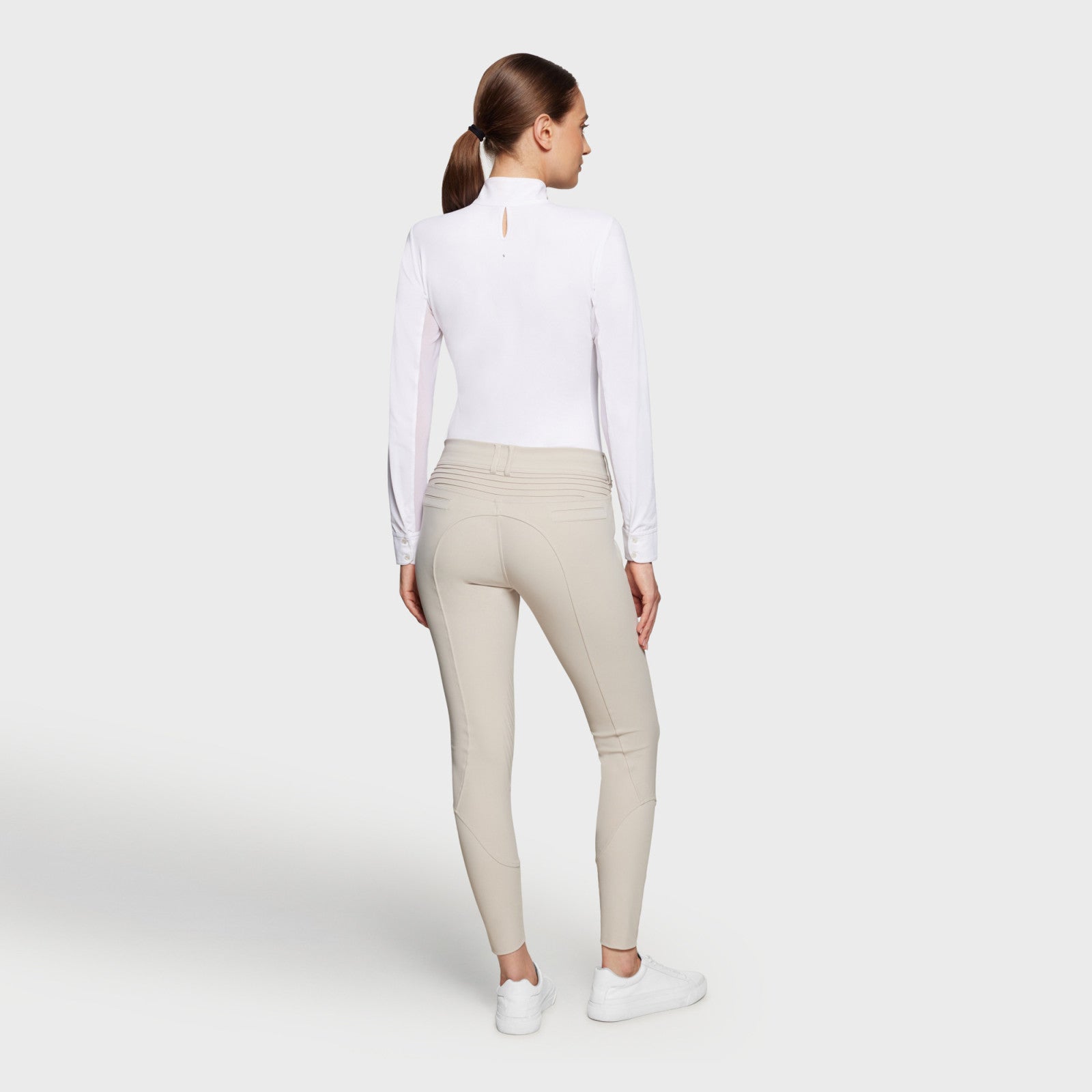 De Chloé rijbroek is ontworpen voor ruiters die op zoek zijn naar een tweede-huidgevoel in een stijlvolle, ingetogen uitvoering. Deze technisch geavanceerde broek combineert comfort, duurzaamheid en verfijnd design voor topprestaties in het zadel én daarbuiten.