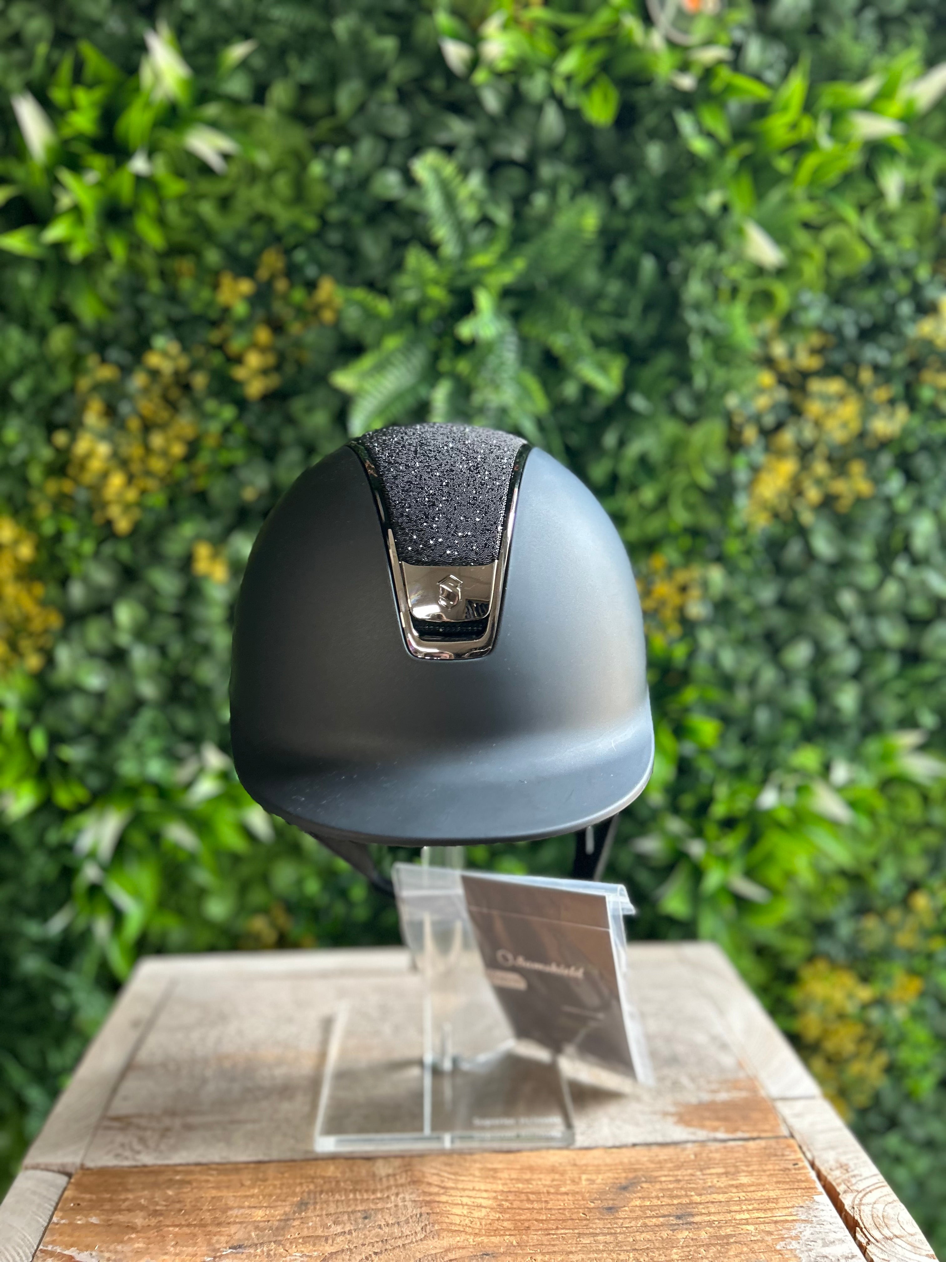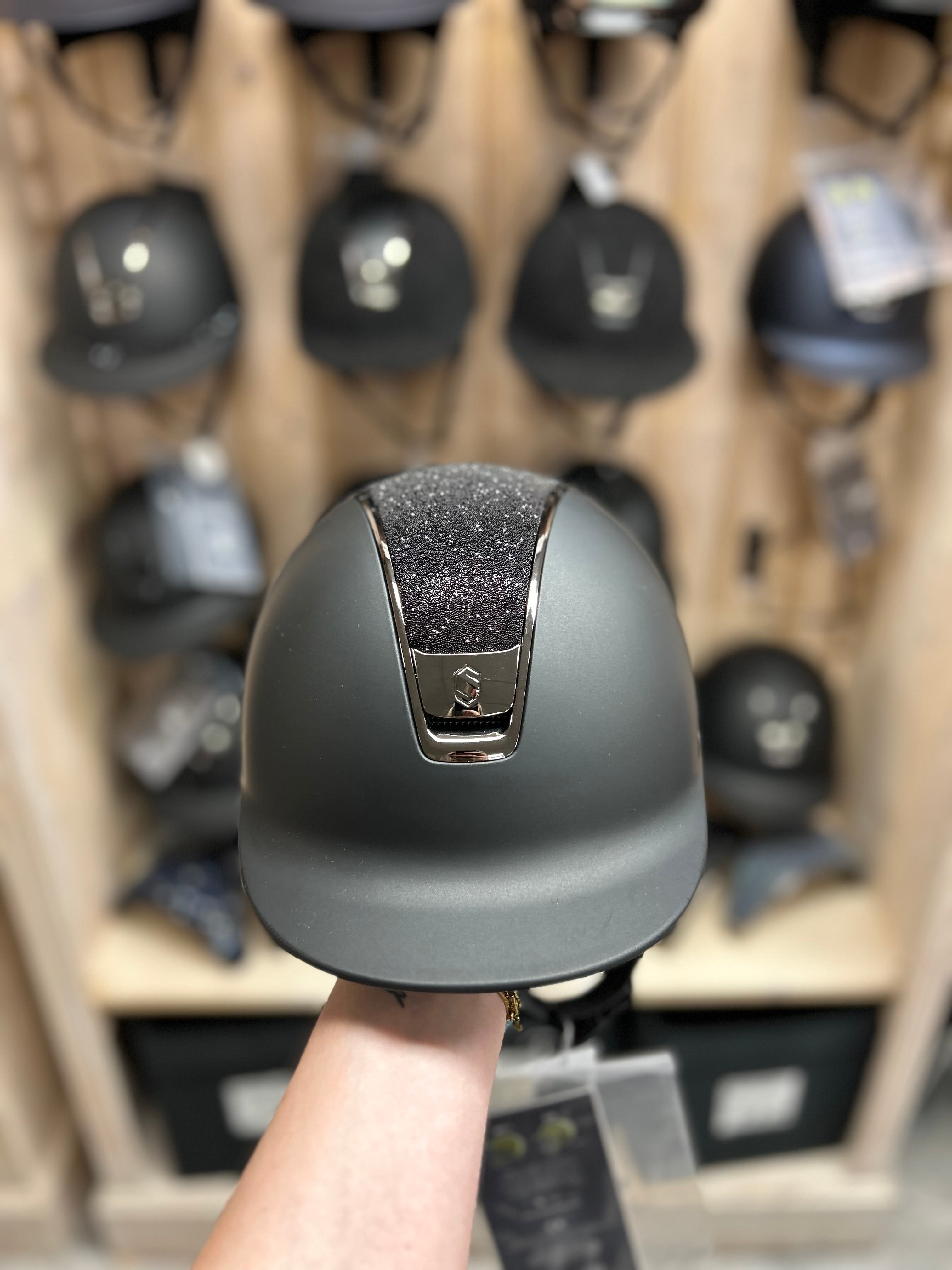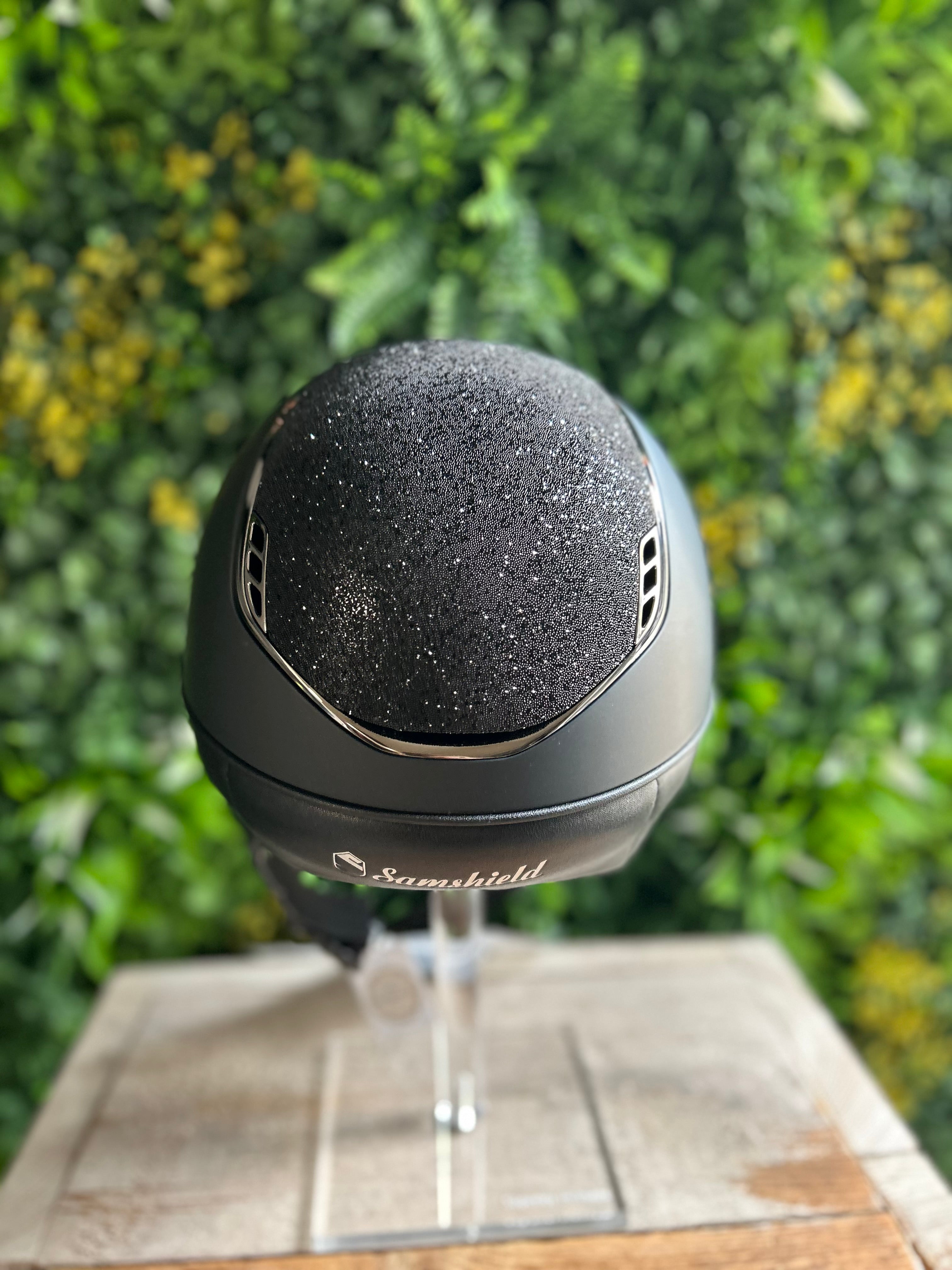 This Samshield 2.0 Shadowmatt Crystal Fabric top is finished with a shadowmatt outer shell and is available in 3 basic colours, black, blue and brown. The helmet is equipped with a black chrome trim and blazon. The straps on the helmet are made of artificial leather. This helmet comes with a liner and a luxury 2.0 Samshield helmet bag. Inquire about the possibilities and the associated price/stock of this Samshield 2.0 Shadowmatt Crystal Fabric top. This is due to a possible delivery time of several weeks. Would you prefer something different on this helmet? Please send us an email.