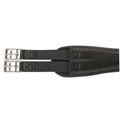 Anatomically shaped girth made of soft and comfortable neoprene. Stainless steel roller buckles. Outside equipped with "air pockets". One side with elastic for optimal freedom of movement. Easy to maintain, easy to rinse. Material: neoprene.