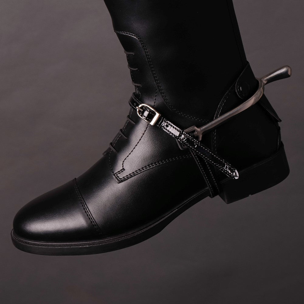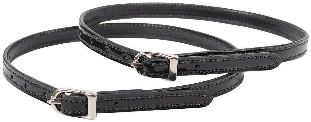Patent leather spur straps with luxurious, fine buckle closure. Length 47 cm.