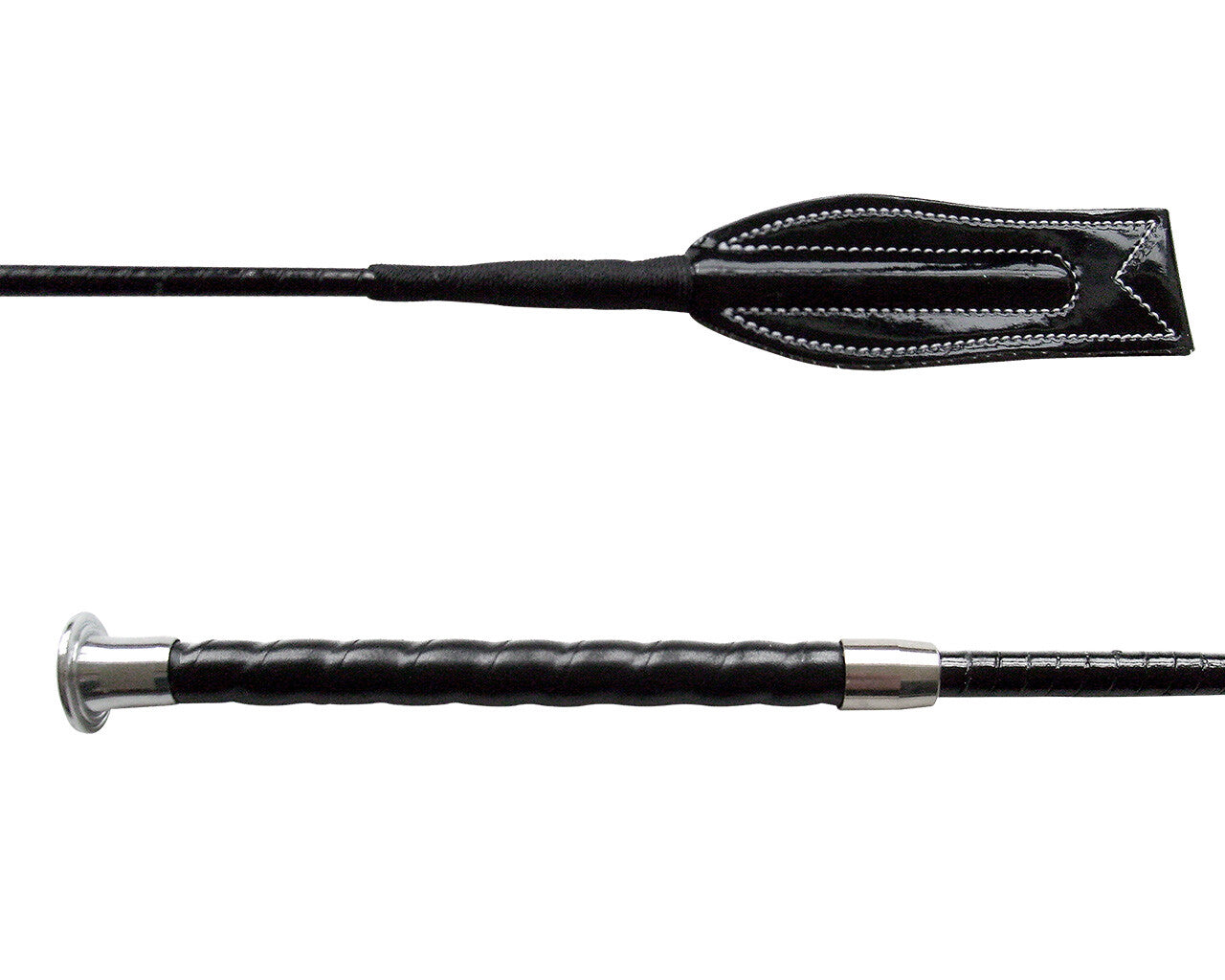 The Comfort jumping whip has a striking appearance because the handle is wrapped in imitation patent leather. In addition, the Comfort jumping whip has a matching flap and a twisted handle for a good grip.