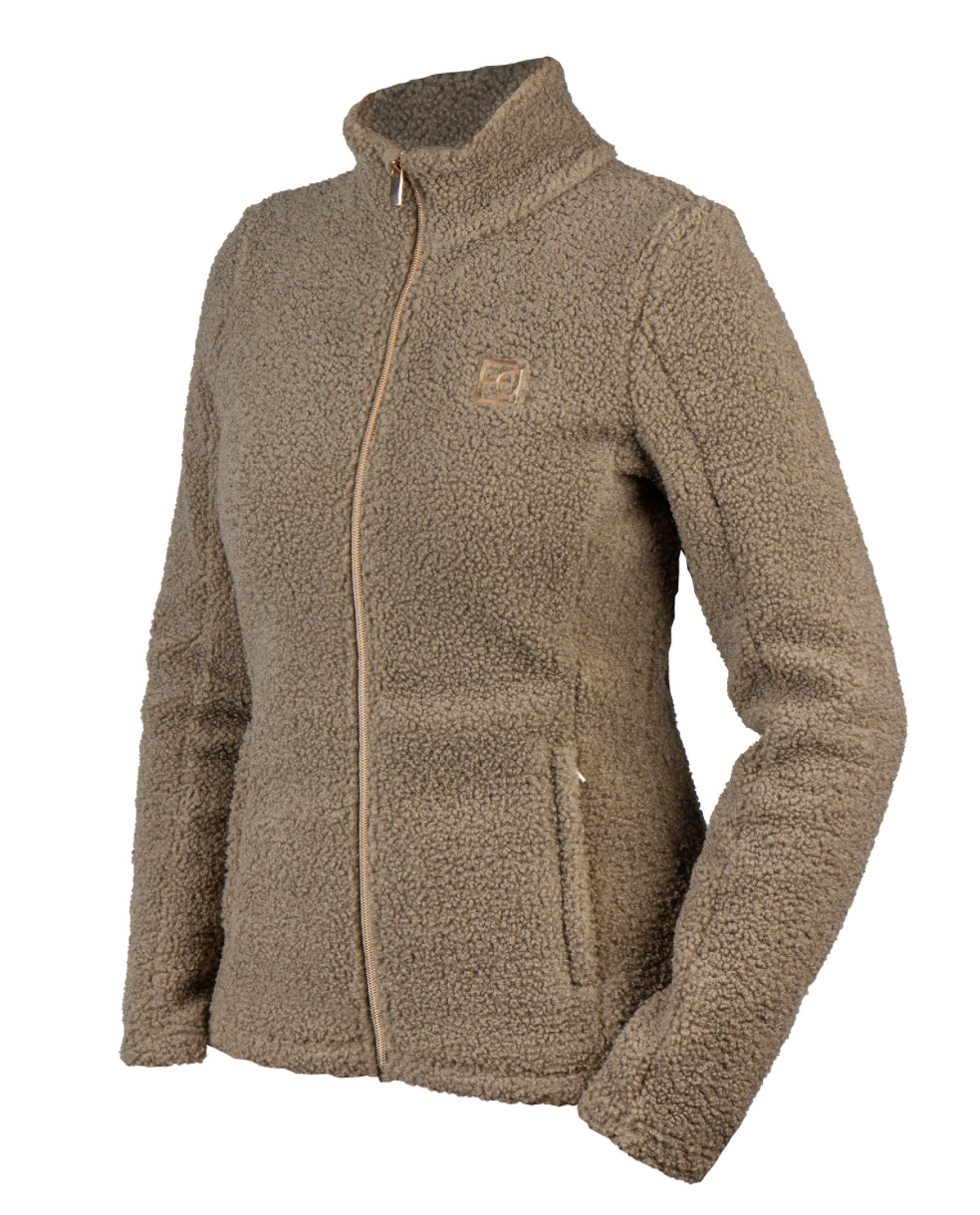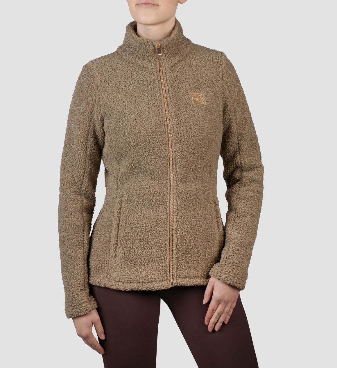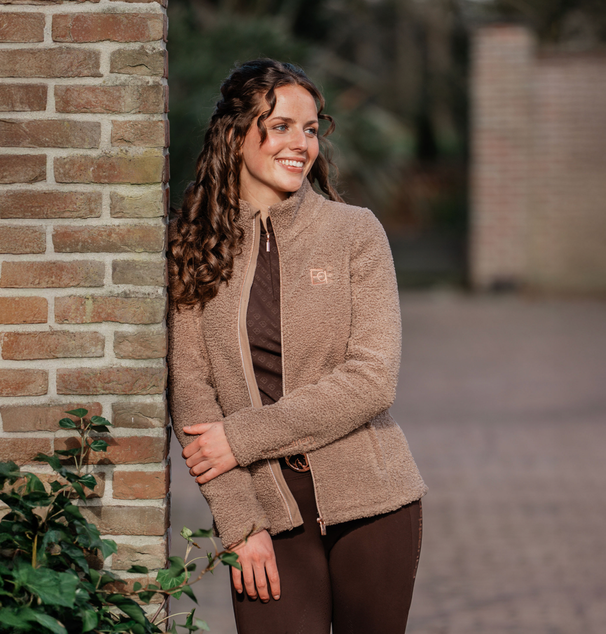 Stijlvolle jas van zacht teddy materiaal, met roségouden details en ritszakken.