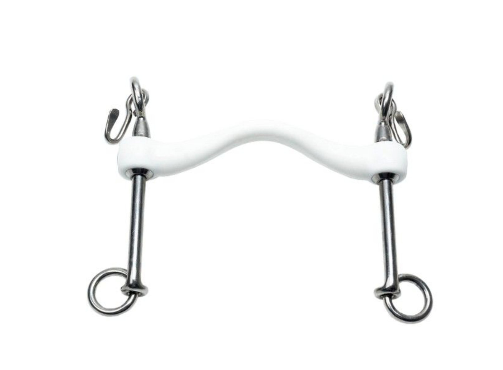 The Inno sense mullen is a dressage bit with a tongue arch that bends slightly forward. This mouthpiece is made of plastic. It has a steel core, which makes the mullen bit inflexible, but soft to the touch. The plastic used is FDA approved, which means that the material is non-toxic and does not contain plasticizers.