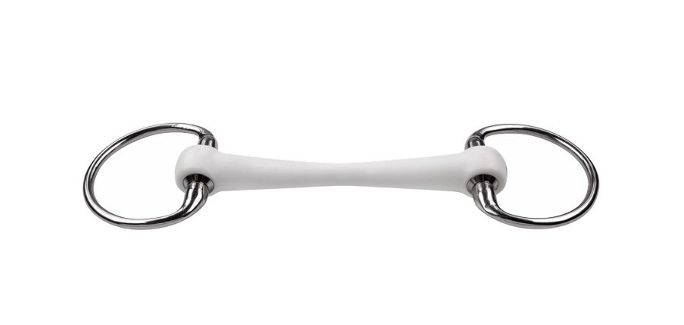 The Trust Flexi Soft Eggbutt Rash is made of TPU plastic and is therefore flexible. This Trust eggbutt with a flexible mouthpiece can be used for all horses, but the eggbutt is particularly suitable for young horses and horses with a sensitive mouth. The plastic used is FDA approved, which means that the material is non-toxic and does not contain plasticizers. The Trust Flexi Soft eggbutt is also very solid due to the use of a flexible stainless steel core.
