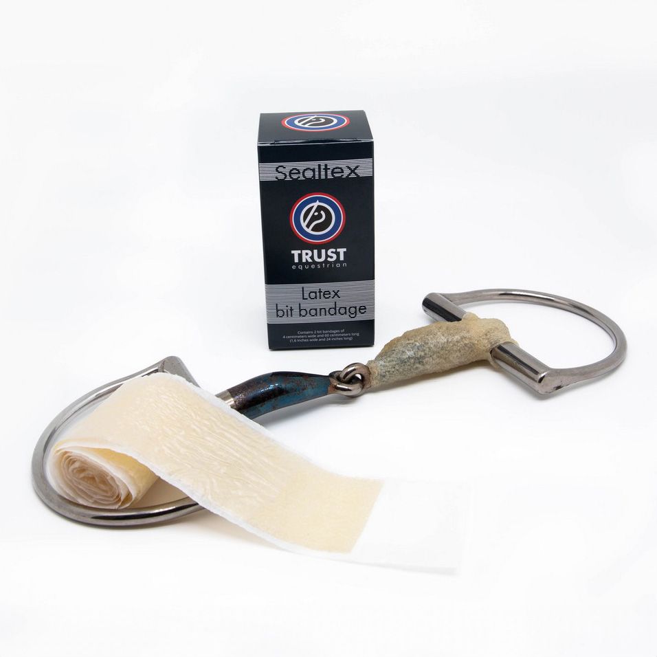 De Trust Sealtex bitbandages is een setje van 2 bandages. Je kunt deze elastische bandage om het bit wikkelen om het zachter of een paar mm dikker te maken. De bandages zijn 100% latex en fei toegestaan. Is niet schadelijk voor het paard en geeft geen smaak af. Ook blijven geen resten op het bit achter. De bandage neemt geen water op waardoor deze in het gebruik niet zwaarder wordt en lange tijd goed blijft. De bandages zijn 4cm breed en 60cm lang.