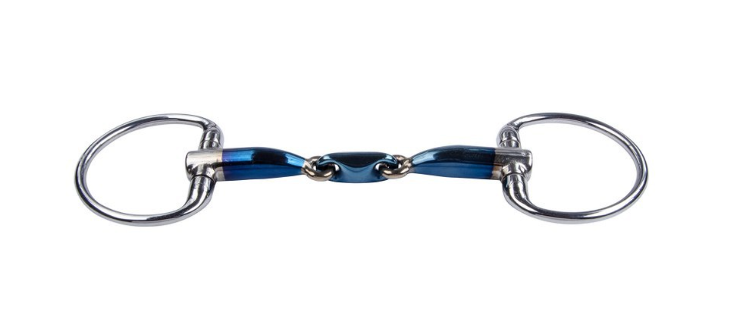 Trust sweet iron bits have a blue mouthpiece, which changes to a brown-gray color through the oxidation process. The sweet iron mouthpiece has a sweet taste. This promotes the chewing process and saliva production, which can ensure better acceptance of the bit.