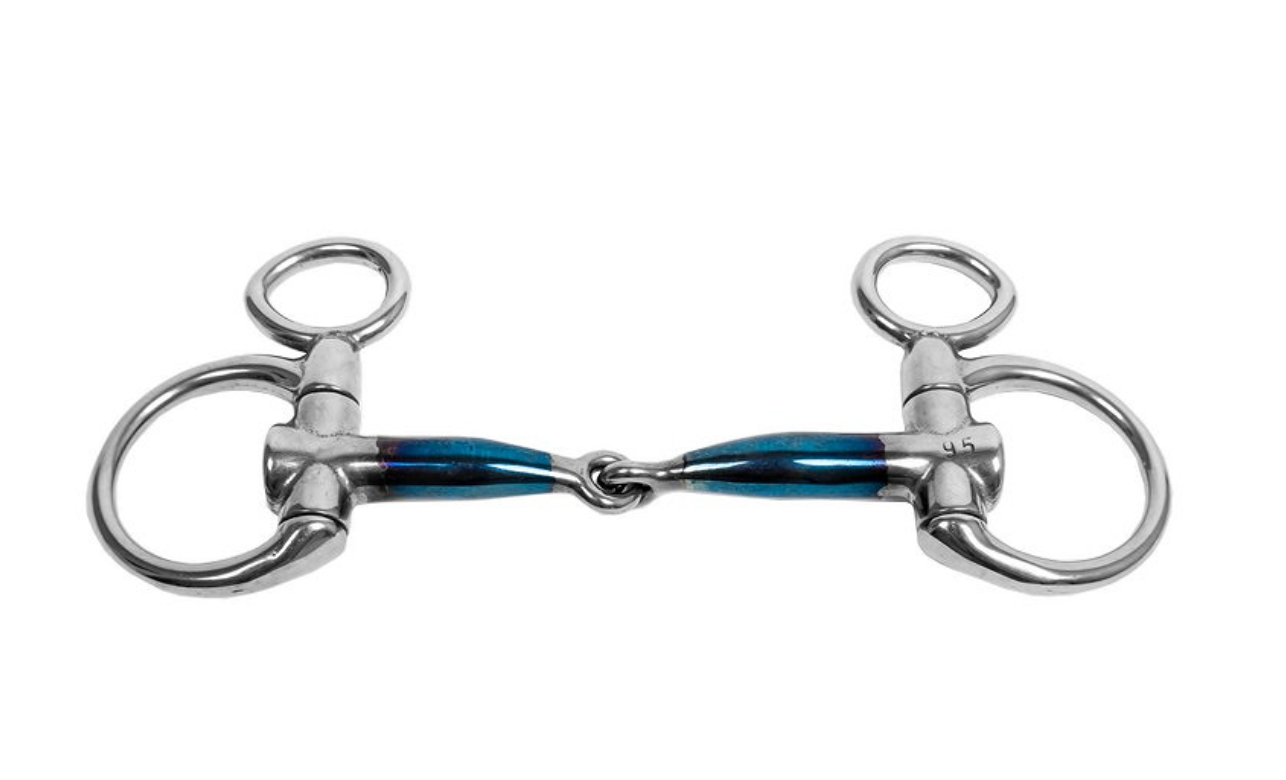 The Sweet Iron bits are made of steel and have a recognizable blue color. Sweet Iron develops surface rust through contact with (air) moisture that tastes sweet and naturally stimulates the horse's saliva production. This will cause the horse to foam more, which ensures better acceptance of the bit. This rust process (oxidation) changes the blue color of the TRUST bits to brown-gray. This is a desired effect of the Sweet Iron bits. If a Sweet Iron bit is not used temporarily, an orange-brown rust layer may form on the mouthpiece. This can easily be removed by wiping the bit with a damp cloth.