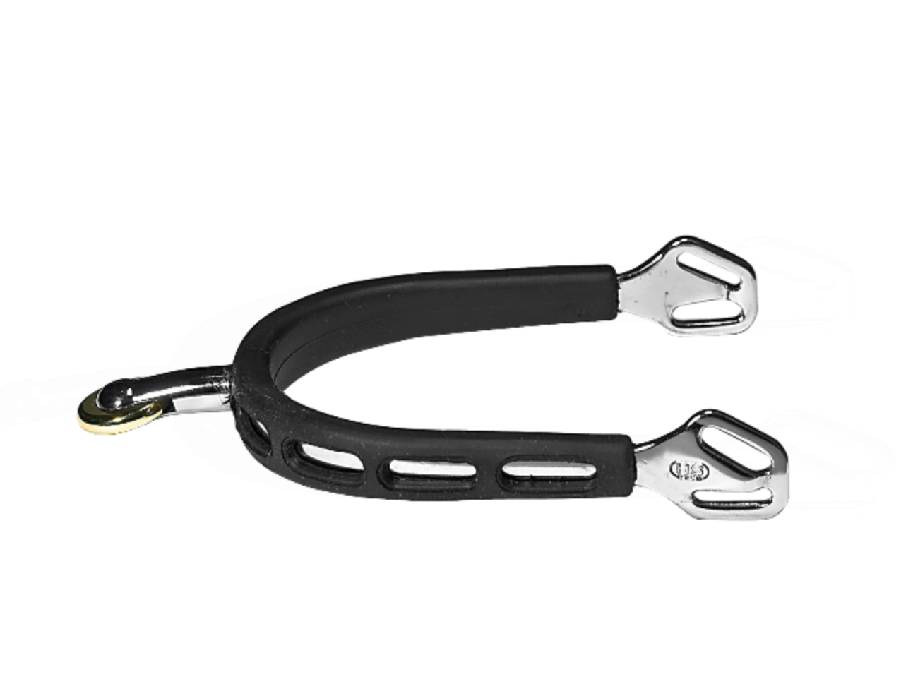 Ultra fit GRIP spurs with Balkenhol system with horizontal Comfort Roller. 35mm. The Comfort Roller wheel is slightly thicker and softer rounded than regular wheels. This ensures direct contact with the flank without damaging the skin and coat.